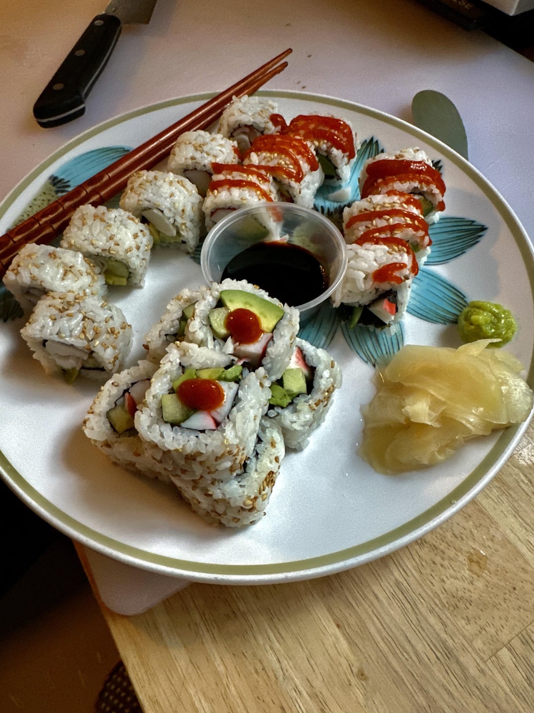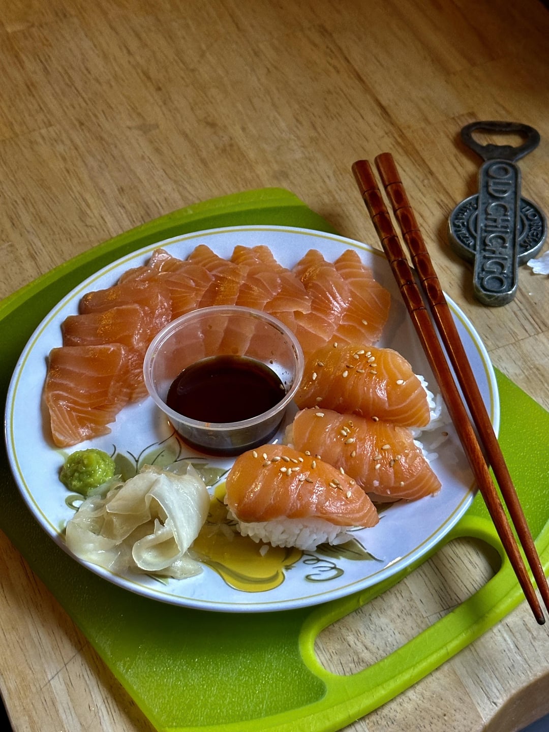 Some Sashimi I made for lunch. Delicious, just broke down a salmon for some more! And a couple Cali Rolls. Cheers! 🥂 by Mushrocker Write A CommentYou must be logged in to post a comment.