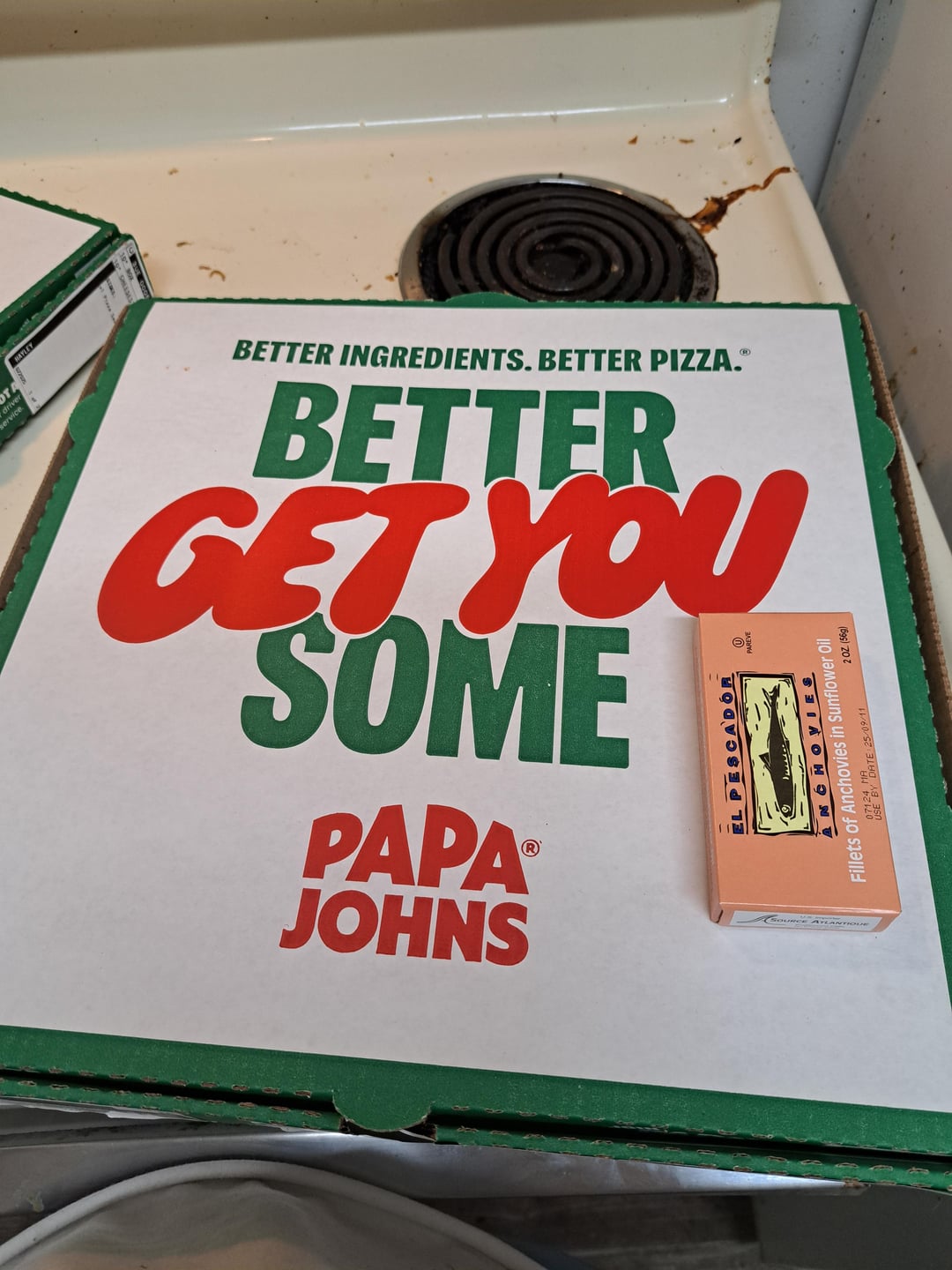 The crime here is that you ordered Papa John’s.