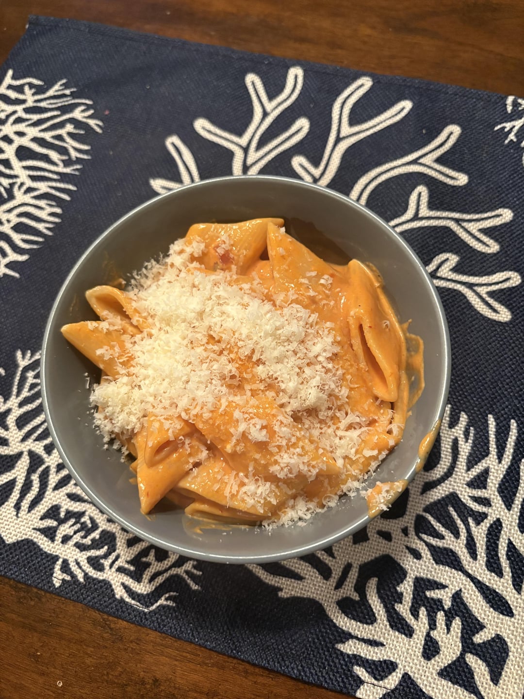 PianoFeeling2210 8 months ago Saute red onion in olive oilAdd 2 minced garlic clovesTeaspoon red pepper flakes6oz tomato paste or tomato sauceAdd vodka, let it cook offAdd heavy creamAdd some pasta waterAdd 3 knobs cold butter