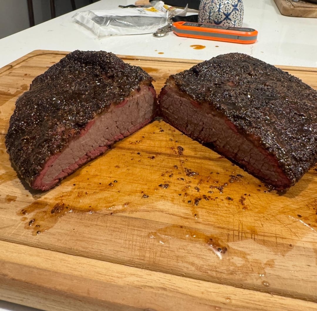 First time trying my hand at using a smoker. Wanted to use a cheap cut as my first test run so I went with a brisket flat. Came out pretty darn good just not as moist like you’d expect but I blame the flat for already being very lean and having minimal to zero fat on it. I’ll be playing around with moping liquid tallow on my next cook.