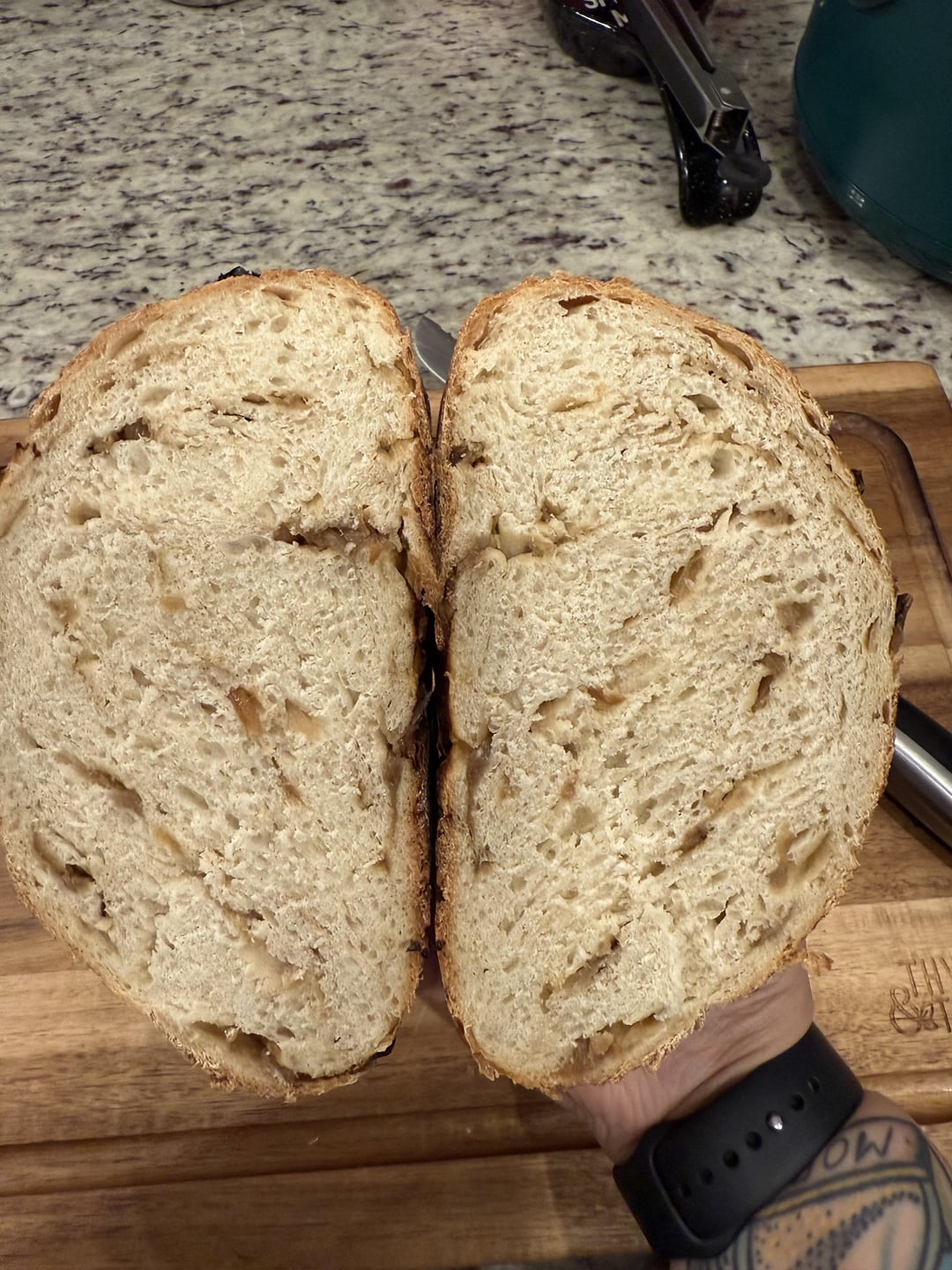 I would buy this kind at the farmers market all the time but wanted to try & make my own. I should have let it proof longer I think. But anyways tasted great. I made grilled cheese sandwiches with it.