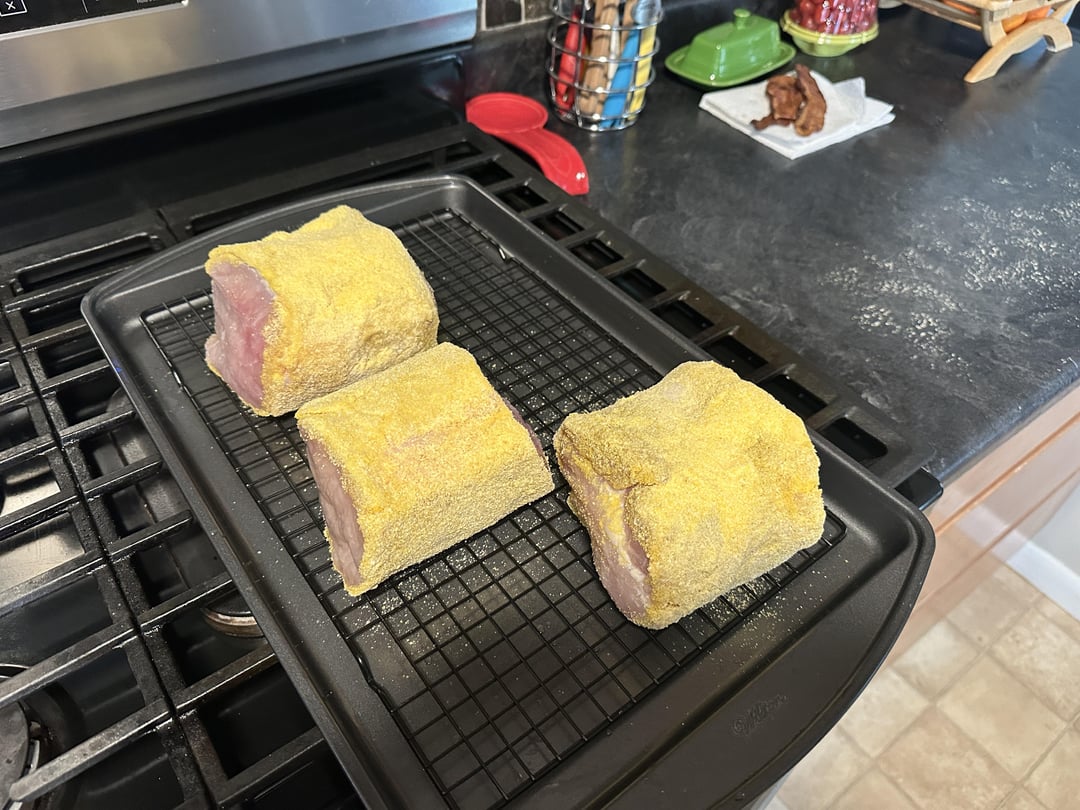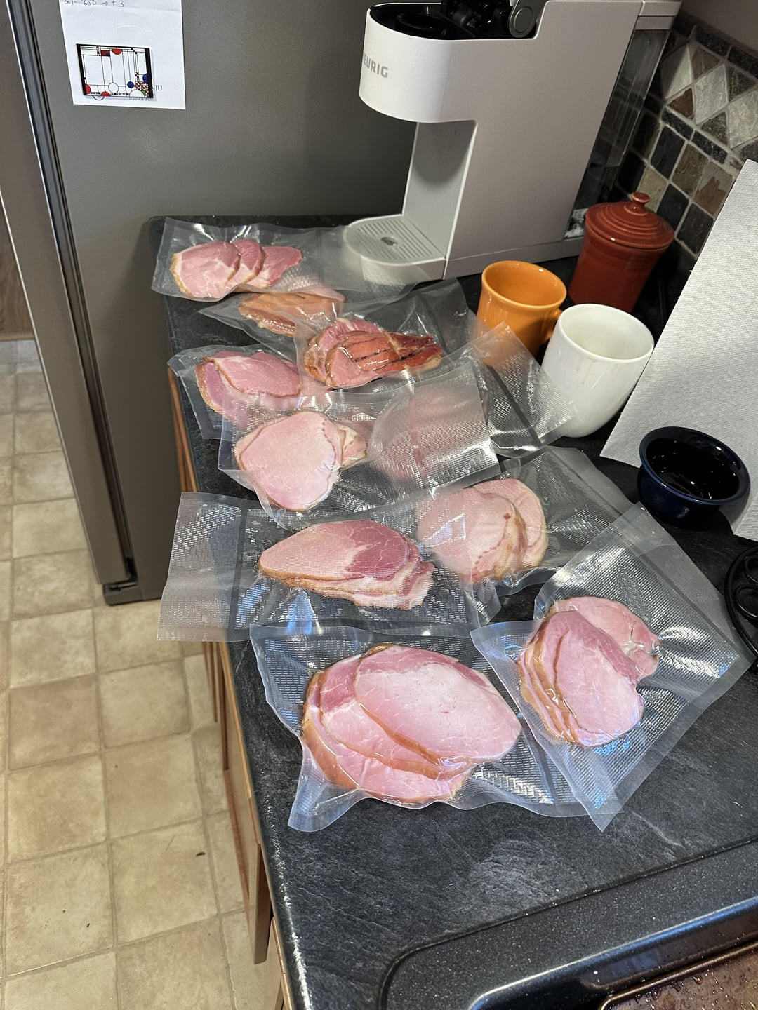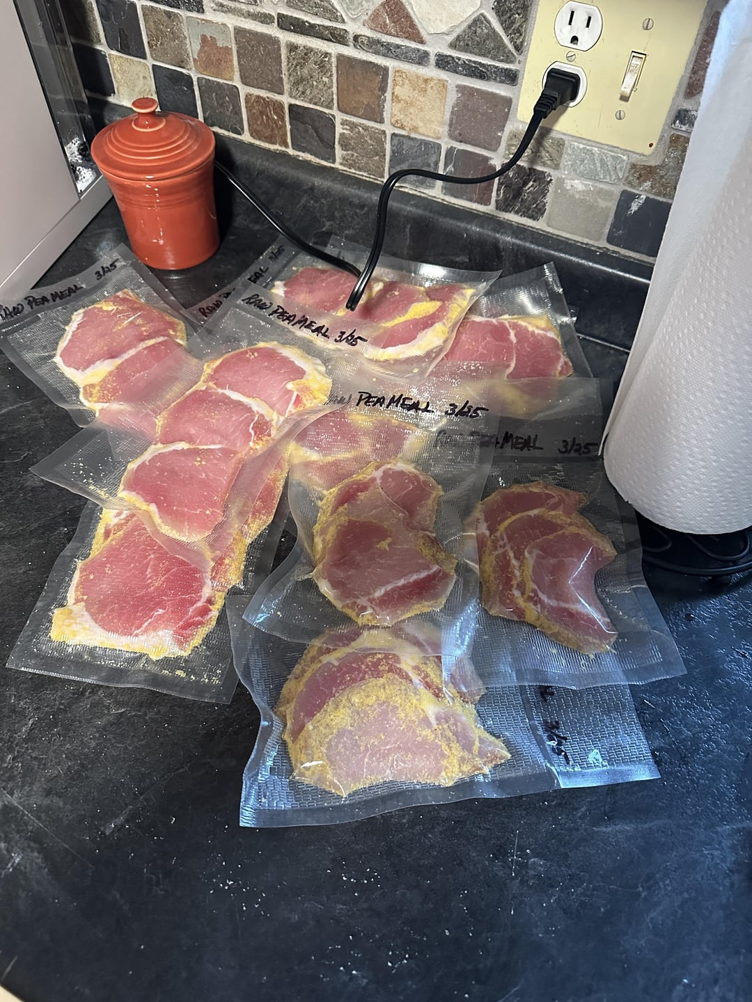 Pea meal and back bacon I stand on guard with thee! Elbows up eh And yes that’s not my trager, that’s at the deer camp still – hosers. 😆