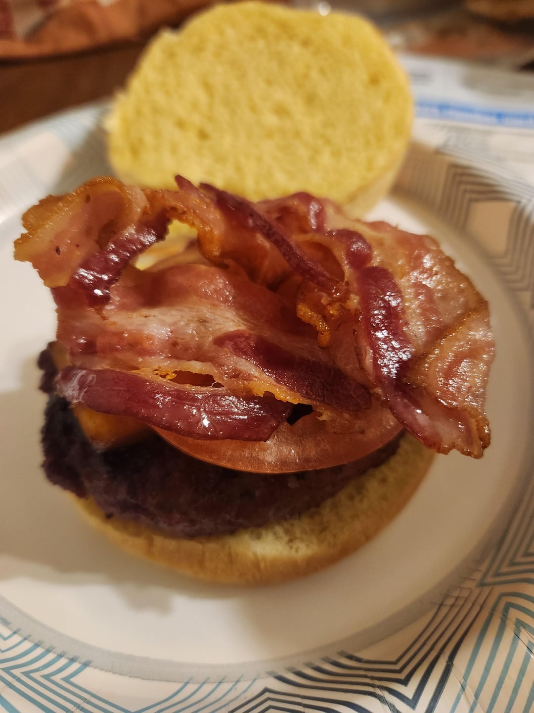 Maiden cook on the new to me weber kettle, and what better to do than burgers. In my mind, burgers on the kettle is what it was made for. Finished off with tomato, maple bacon and my own smoked, cheddar cheese. by Any-Investigator-379 1 Comment Trip_Fresh 7 months ago Beautiful first cookWrite A CommentYou must be logged in to post a comment.
