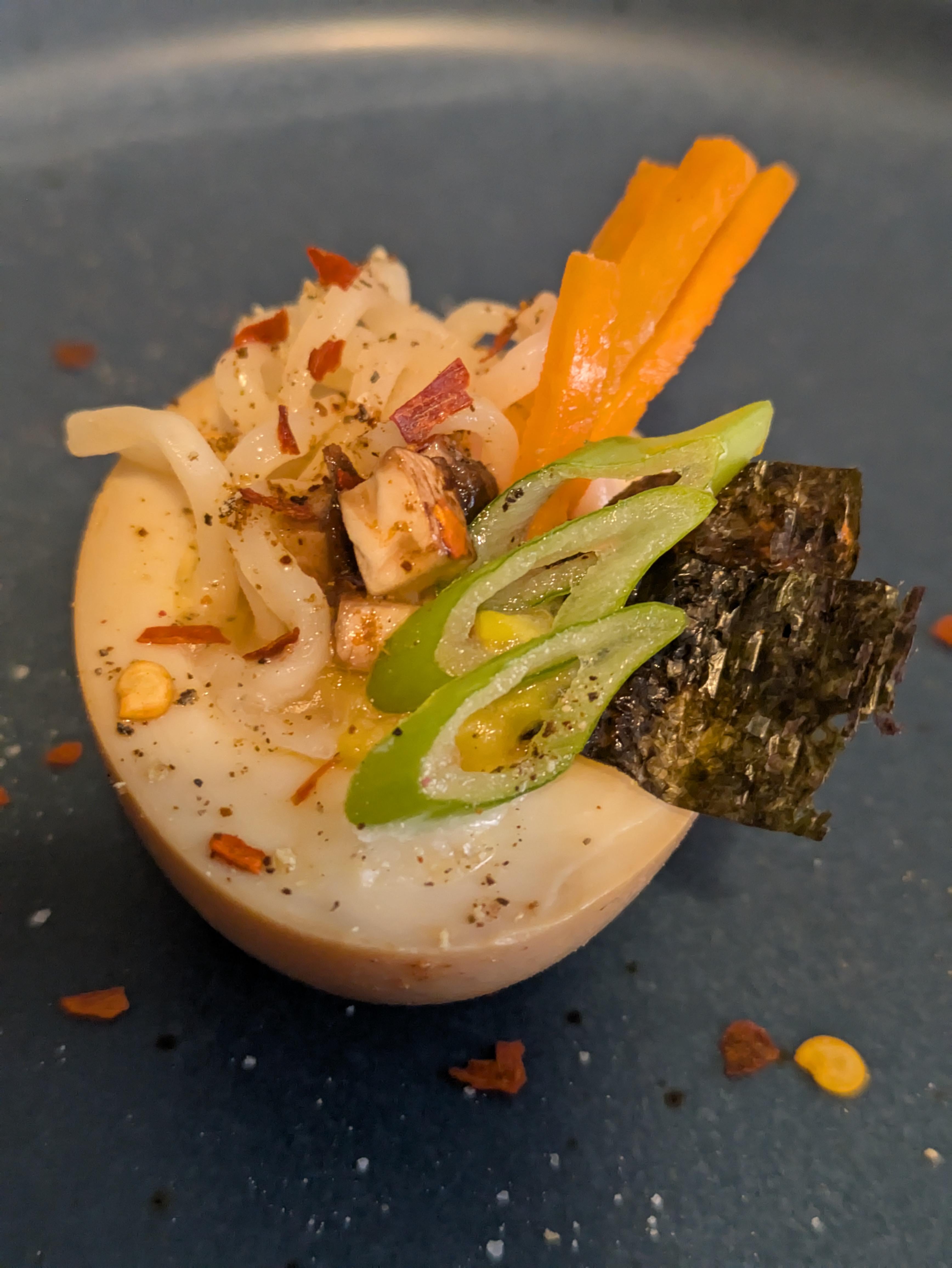 Share Facebook Twitter Pinterest LinkedIn Reddit Ramen egg 🍜🥚 Shio ramen with a coconut ginger oil Scallions 🧅, mushies 🍄, carrot🥕, seaweed Salt, pepper, red peppa flakes by TransFemWifey_ILY 10 Comments vButts 1 year ago So cute! The carrot sticks kinda look like chopsticks so it’s perfect Significant_Way2560 1 year ago Yummy nloo 1 year ago These look gooooooood wow & so cuuutee GuyYouSawOnReddit 1 year ago It looks so tasty! And very cute! Cartridge-King 1 year ago naruto ramen🥷 boneless_kimchi 1 year ago VERY exciting! ✨ AngelLK16 1 year ago You need like 6 – 12 of these. Parents with kids should make these for them! HanaNoAme_ 1 year ago that looks absolutely amazing, mustve been delicious sh4ttered-dre4ms 1 year ago I now only want this instead of deviled eggs!! 🤯 0dty0 1 year ago Man, the portions at this ramen place are getting ridiculous! Seriously though, that’s pretty clever, and it looks super pretty! Not to mention tasty. Write A CommentYou must be logged in to post a comment.
