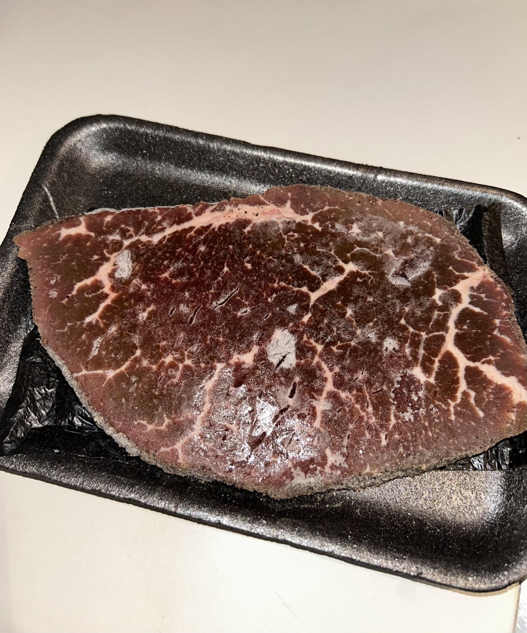this is 260g and i think a sirloin it’s called? idk about steak cuts tbh but from the pics i tried to research, it seems like a sirloin.