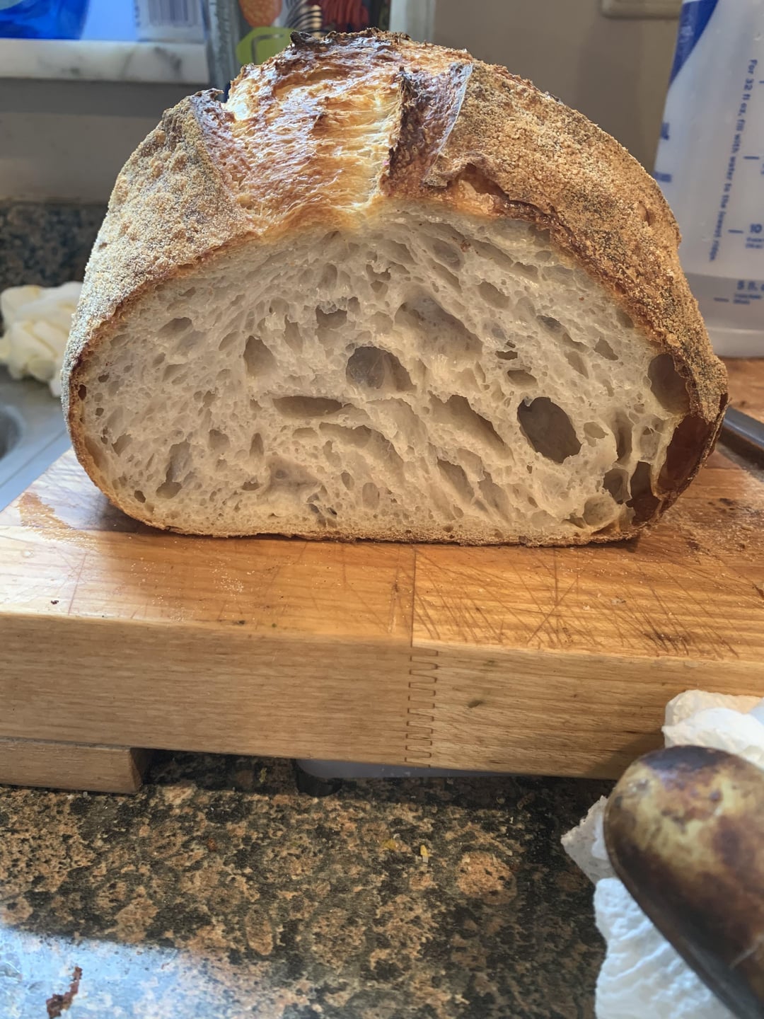 Highly recommend trying only BF is your starter is giving you trouble. Also, I def fell asleep and my Dough was starting to get sticky again, but it was still light and airy. I didn’t even preshape that bitch.. literally woke up at 1 am, shaped it, threw it in the banneton and refrigerated it until this morning.