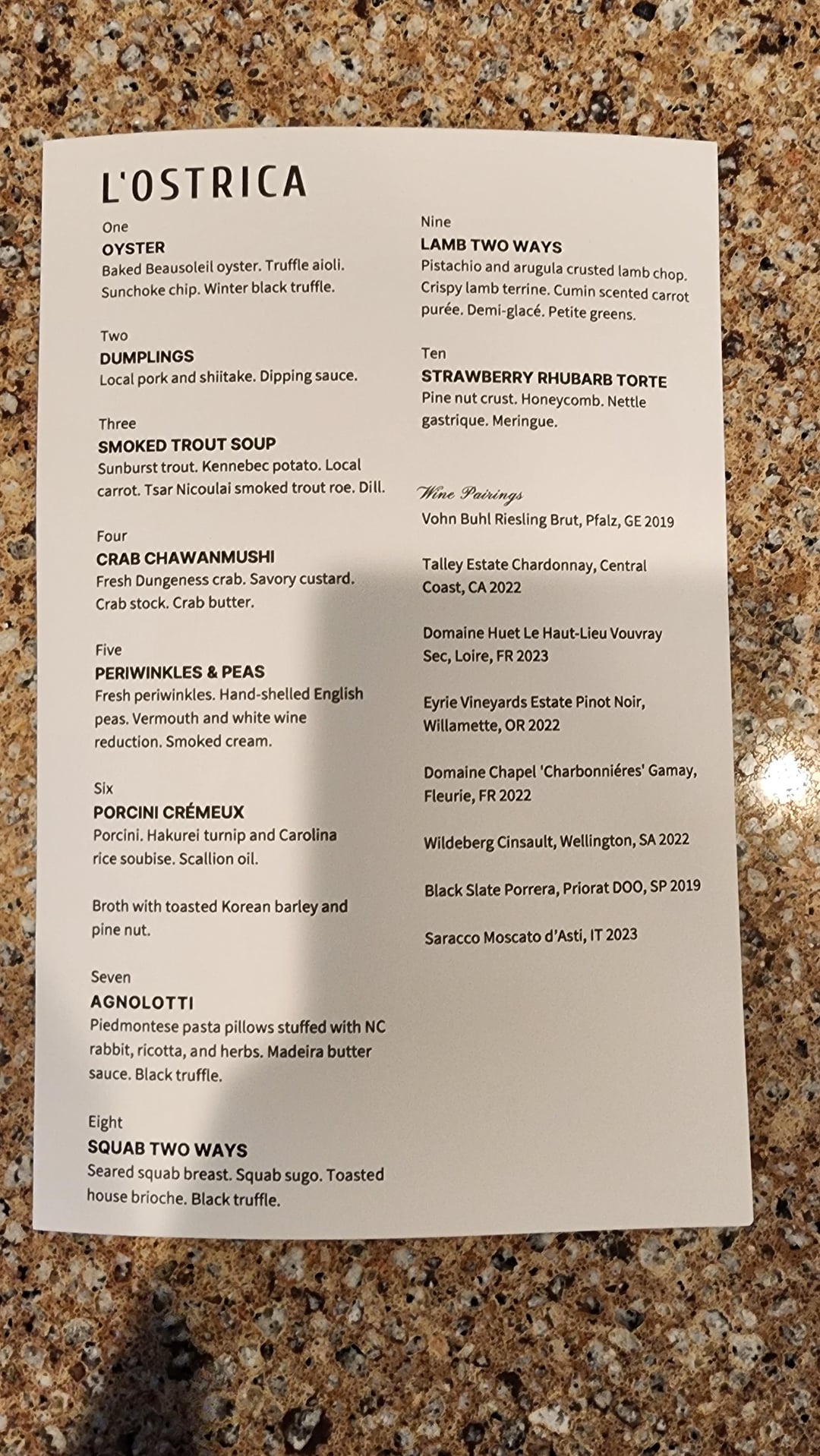 The food was delicious overall and the wine pairing was well done. My only gripe would be the squab breast was too gamey for me, but that's a very personal metric.