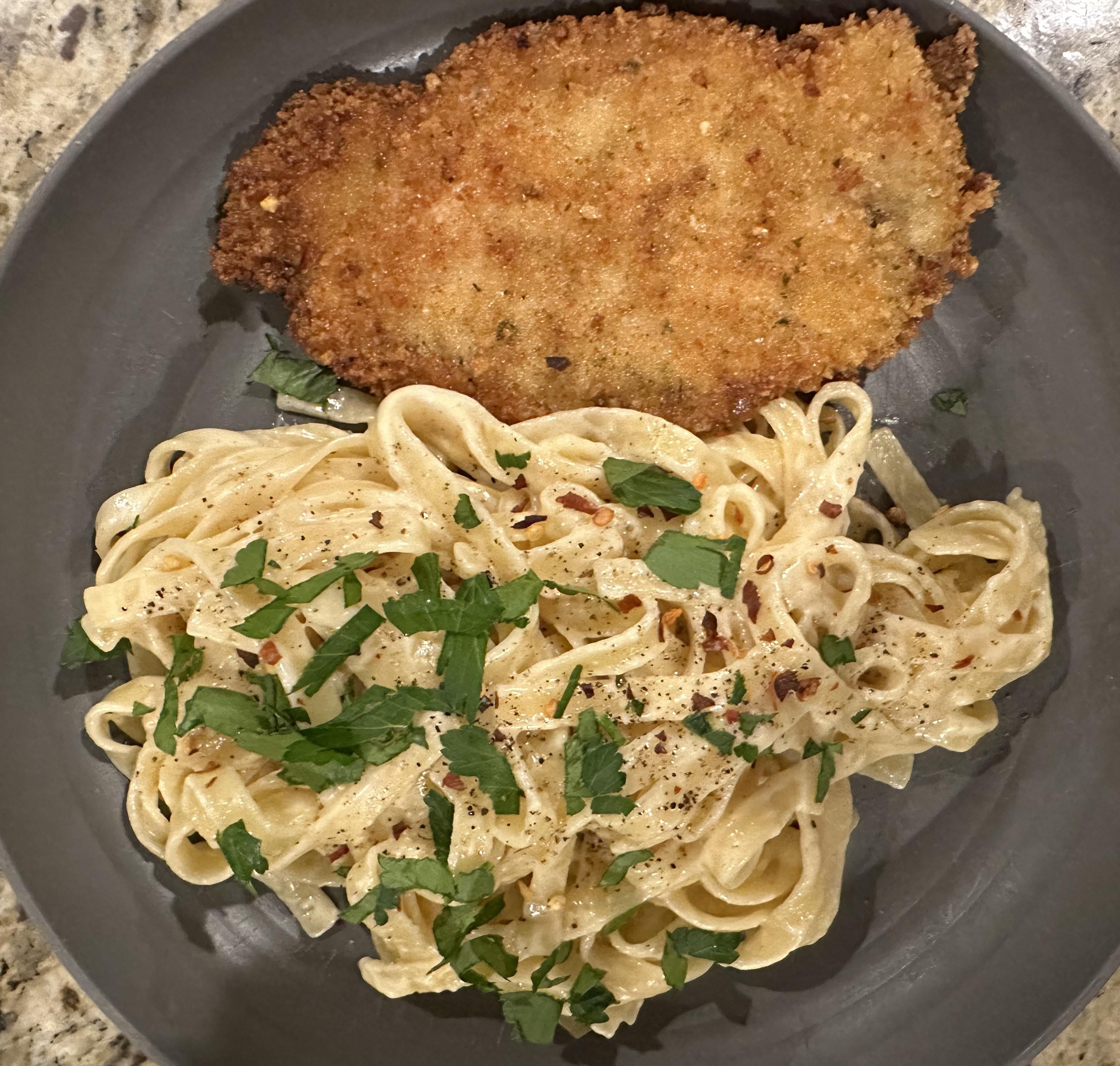 Fettuccine Alfredo w/ a chicken cutlet by MinistryOfDankness86 2 Comments PianoFeeling2210 8 months ago 10/10 would eat autumnskiesss 8 months ago This looks SOOO good 🥹.Write A CommentYou must be logged in to post a comment.