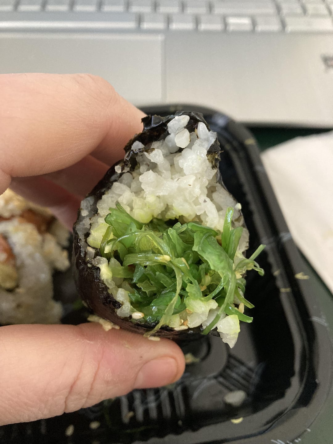Seaweed salad. Tastes like what I imagine the inside of an aquarium tastes like.
