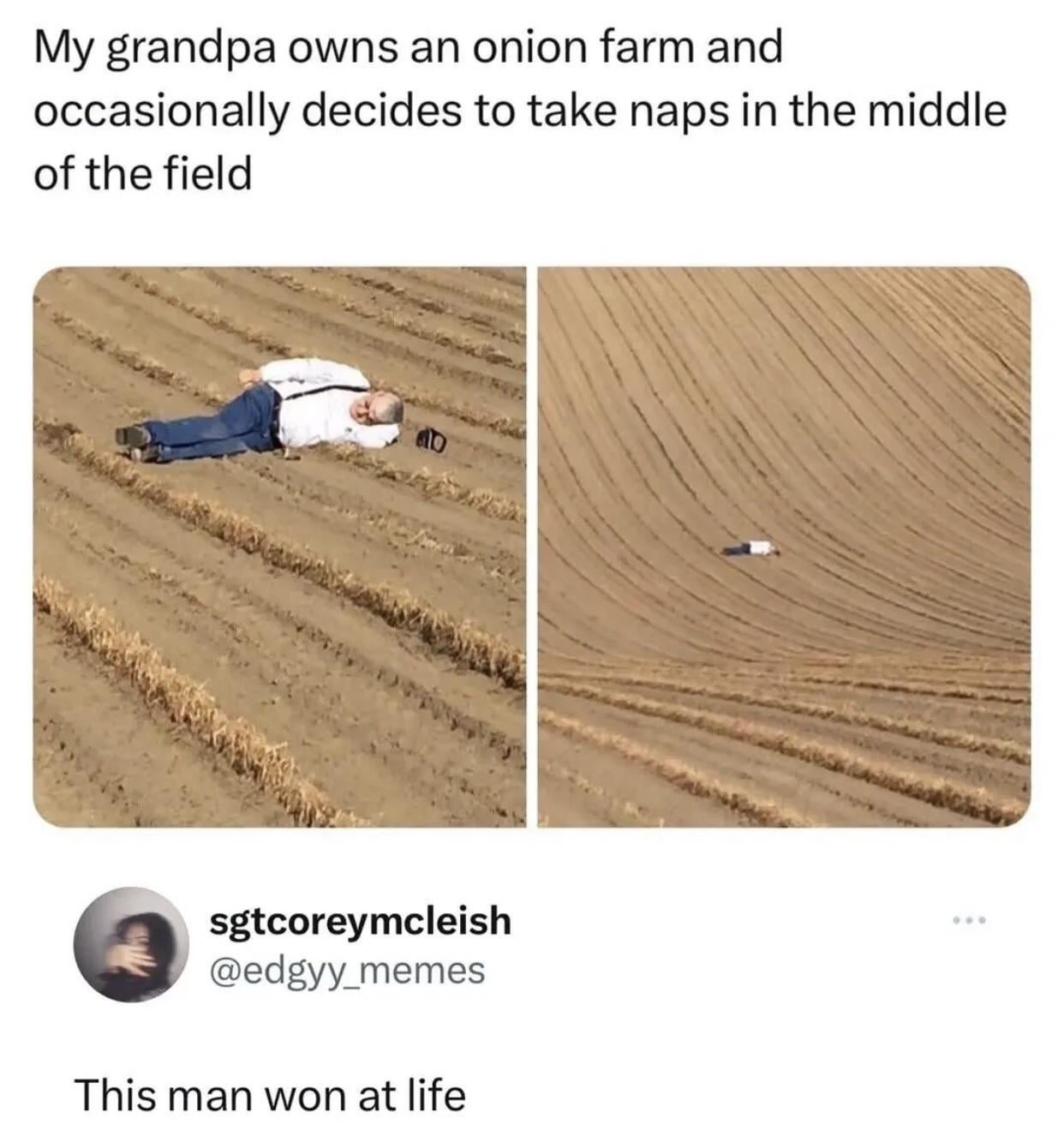 I used to sleep like that on the farm I grew up on. I miss it so much. Mid day naps are the best!