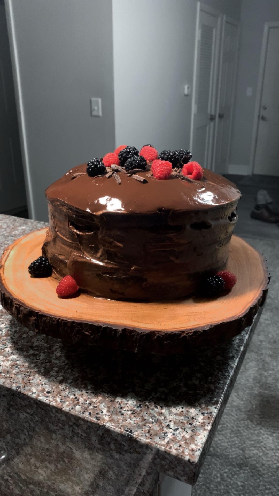 I’m not very good at cake decorating but the flavors were there. Tried Sally’s baking addiction chocolate cake. I liked it a lot. It’s good if you like a chocolate cake that isn’t super sweet. Only change I made was a tsp extra of espresso powder and an extra tablespoon of vanilla.