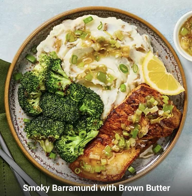Damn, this was delicious! The paprika-coated Barramundi was perfectly accompanied by the roasted broccoli and stock-enriched mashed potatoes, and the brown butter sauce was sublime. A four star Hello Fresh offering…