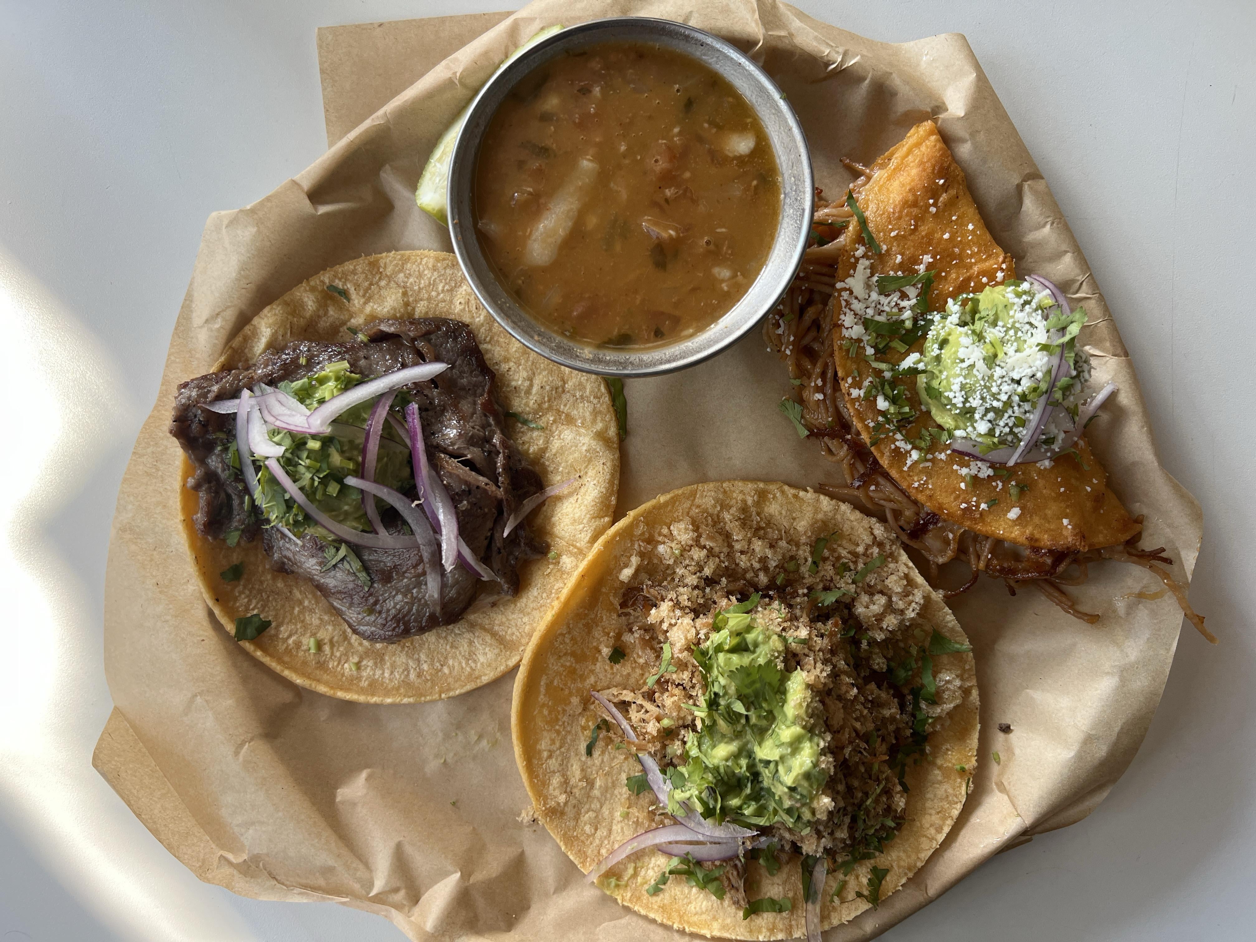 Taco de lechón, taco de fideo & taco de cachetada de ribeye at Salsitas in San Antonioby tacotrail Write A CommentYou must be logged in to post a comment.