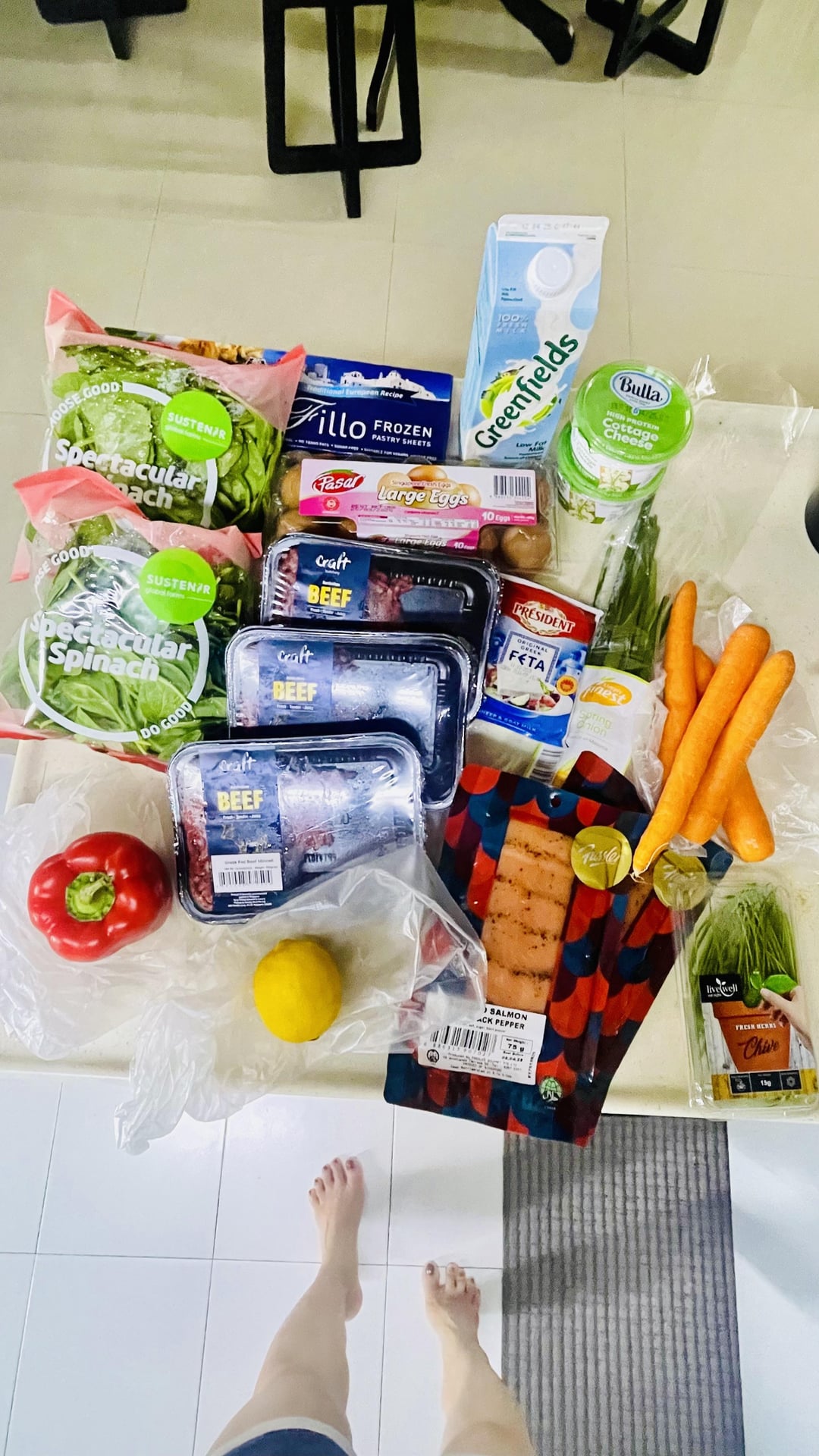 4: all the ingredients used for meal prep this week, cost SGD76.87 (USD 57.77) from Fairprice Singapore
