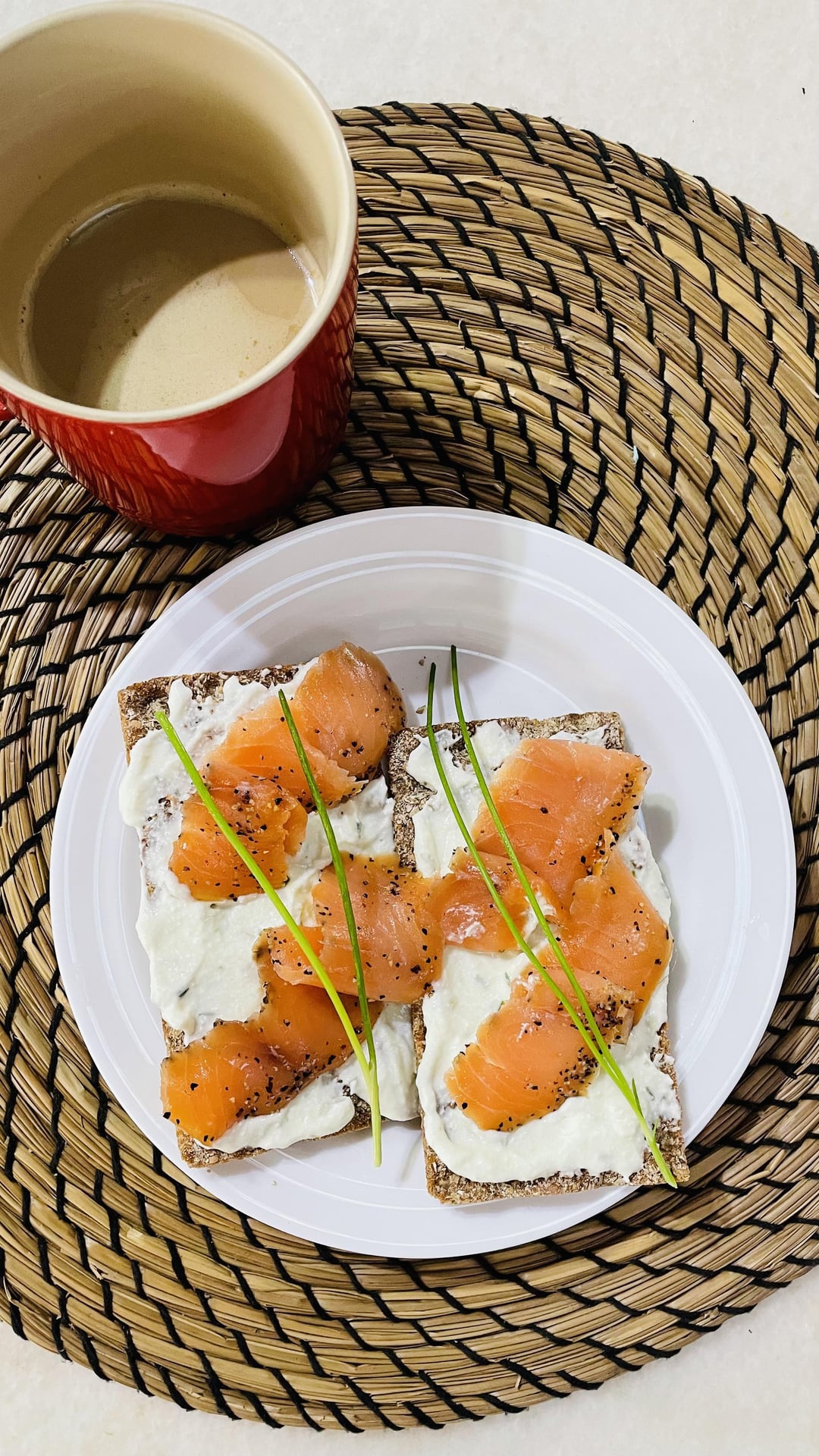 5: bonus meal used from leftover ingredients for the quiche- chives, salmon and cottage cheese on Knäckebröd