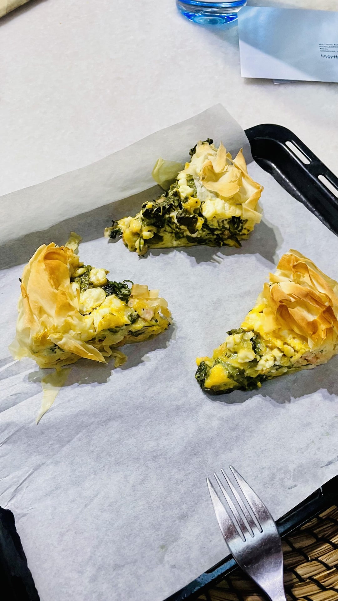 2. Quiches: 180 degree C on your oven. 4 filo pastry sheet cut in half, layered with olive oil on round pan, for the filling, blend cottage cheese til smooth just mixed everything else except the feta cheese, salt n pepper to taste, pour the mixture to the filo layered pan, 45-60 minutes in the oven, i added 3 minutes on 230 C cause mine wasn’t browned to my liking after 60 mins