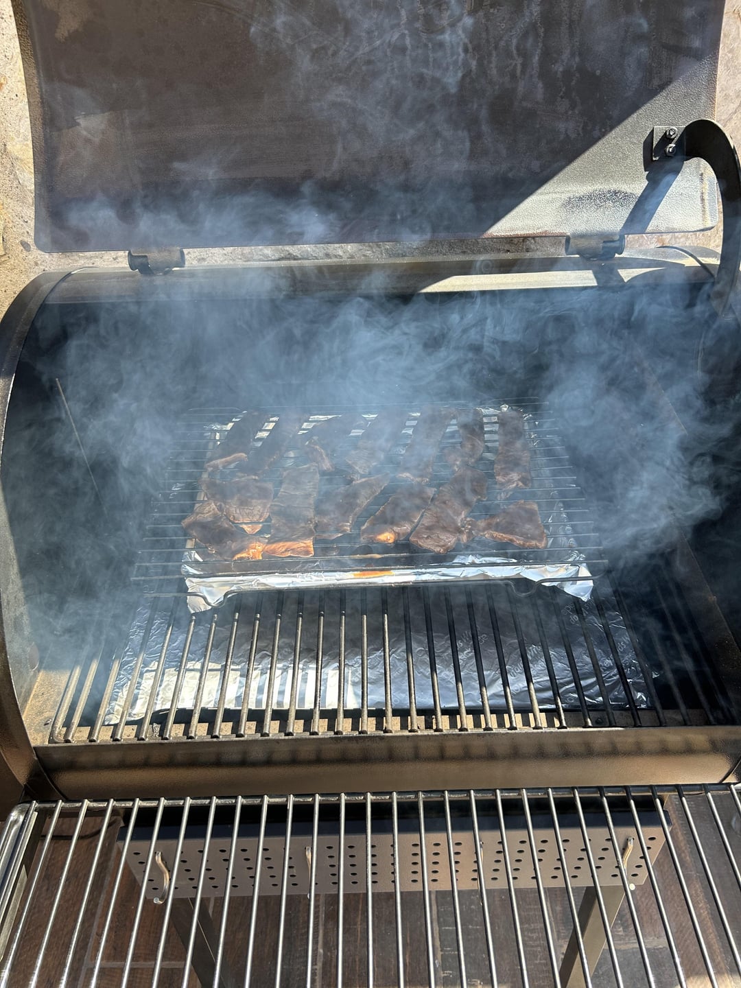 I used a mesquite marinade. Gonna go at it 180° for 3-3.5 hrs.