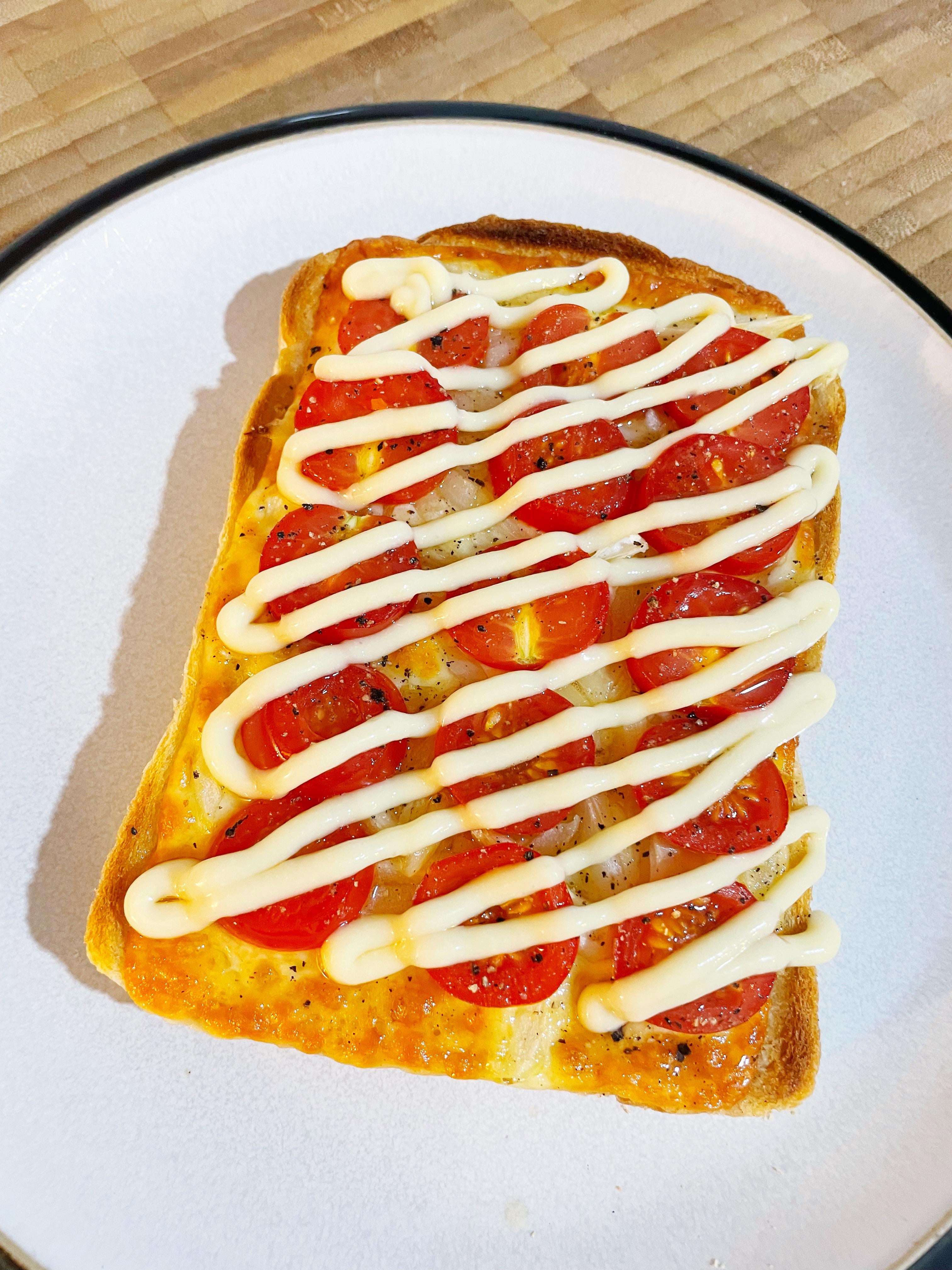 Cheese & Onion on toast topped with cherry tomatoes, cracked black pepper and salad cream drizzle by gibgod Write A CommentYou must be logged in to post a comment.