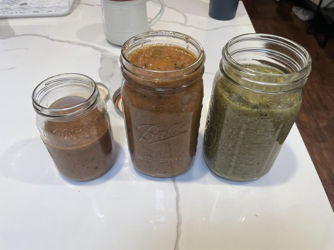 With the meat off, I threw veggies on for the salsa. The green salsa was 9 tomatillos (halved), 3 serranos (whole), a medium onion (quartered) and a handful of garlic with some oil in a little foil ball. Smoked at 225 for an hour and then cranked the temp up to 400 to put some color on them. Probably an additional 45 minutes or so. Threw all of the above into a food processor along with a good bit of cilantro, juice from 1 lime, salt, and garlic powder.
