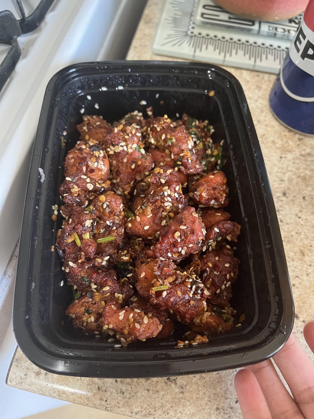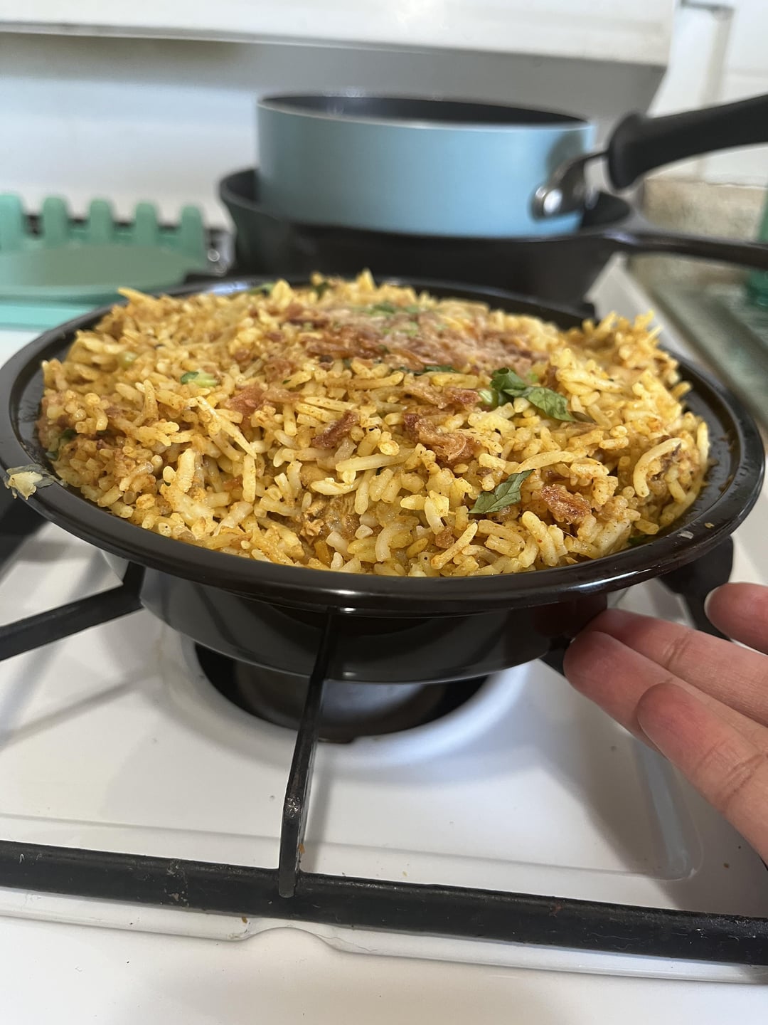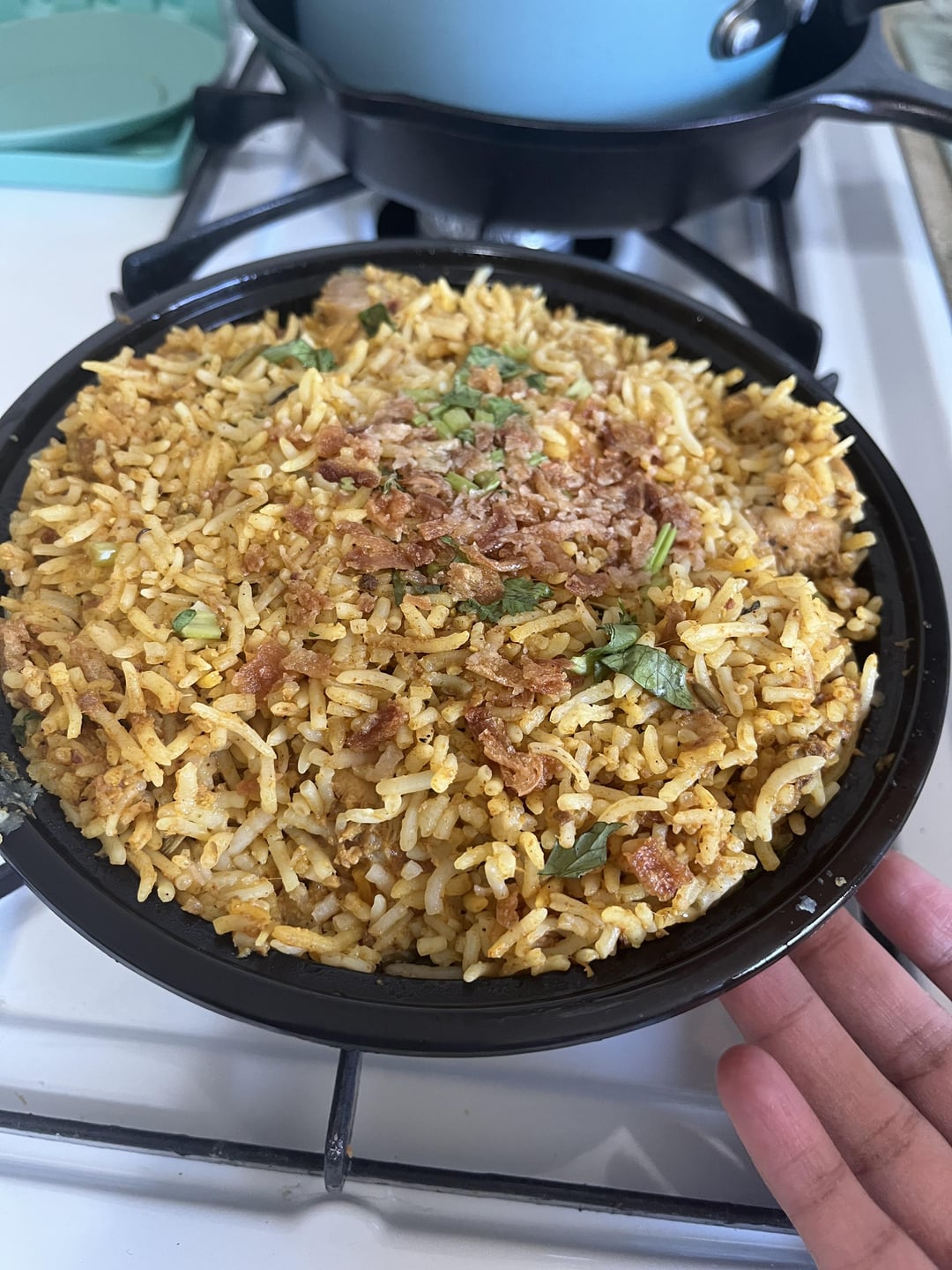 First 2 pics is chicken biryani. Next pic is a mango lassi and I put it by a can of 12oz Pepsi for size reference. Next pic is firecracker chicken. Next pic is tandoori half chicken (I won’t eat the veggies). Last pic is naan. I have a garlic one and a chili one the same size. Thank you so much to anyone who can help me.
