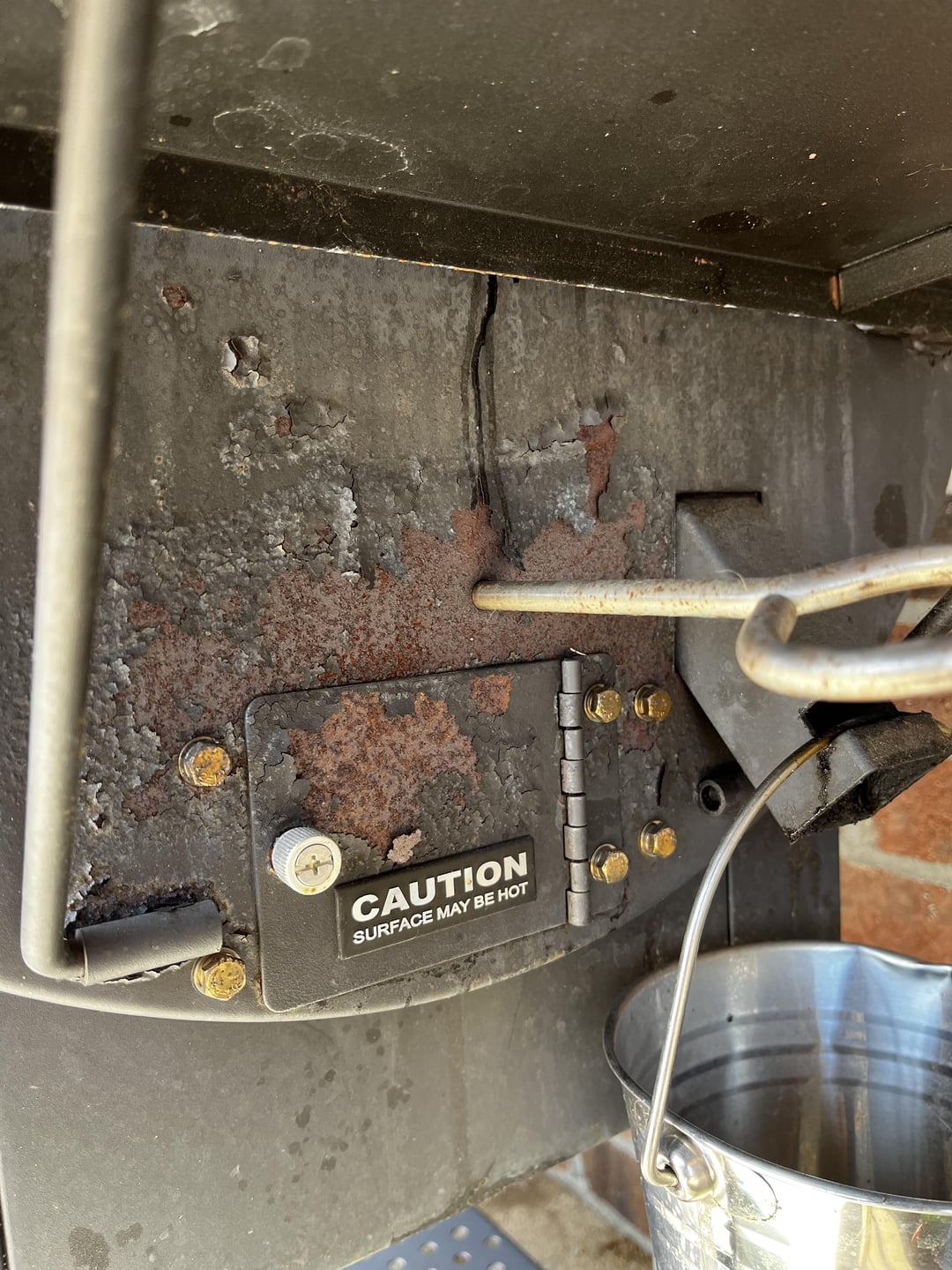 I can’t begin to explain how disappointed I am with GMG. Multiple power failures, lack of compassion from GMG, and as the pictures show, just garbage quality. I don’t neglect it and it still looks like trash. Never in my life have I experienced something like this.