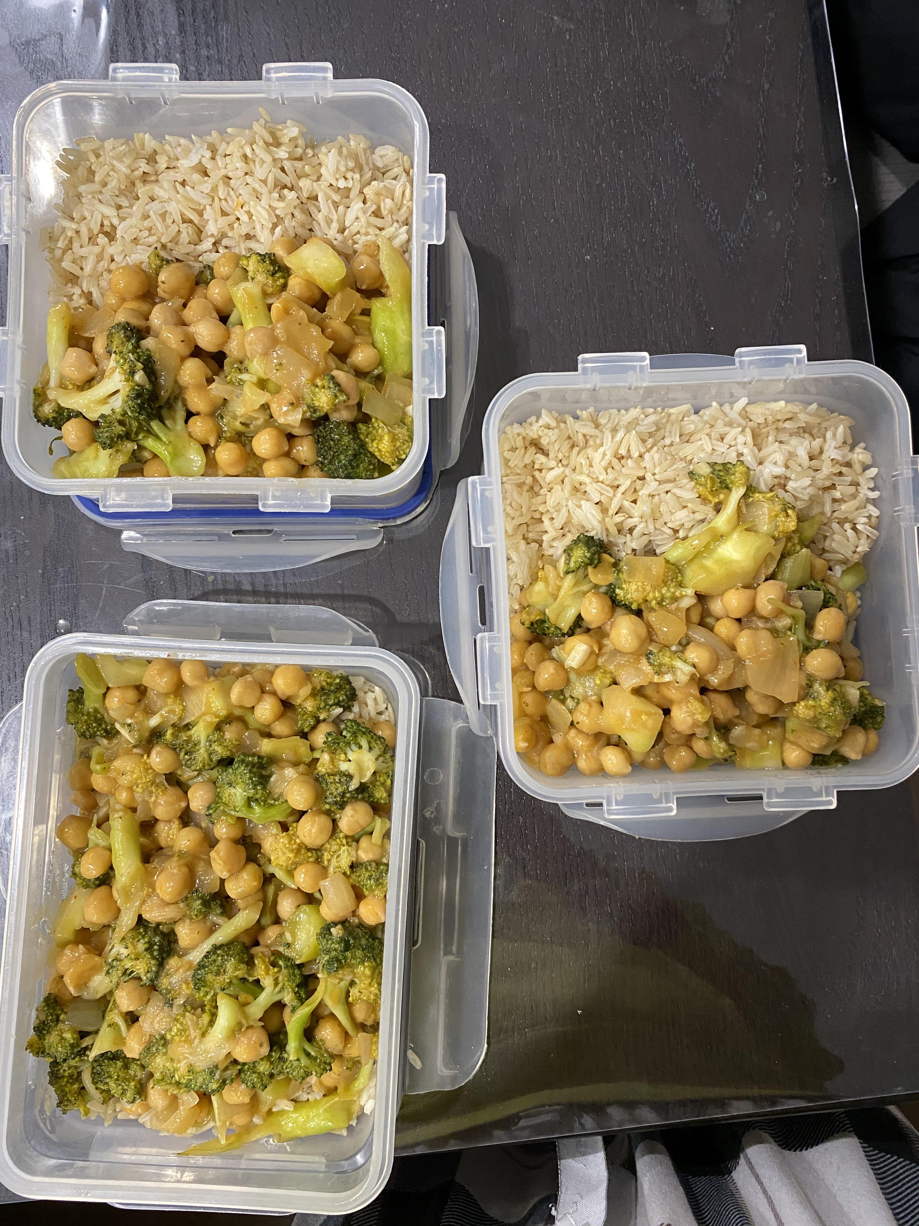 Broccoli chickpea stir fry and brown rice for my first ever work week!