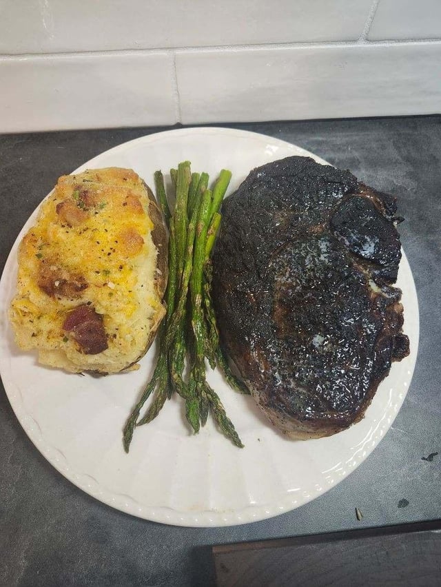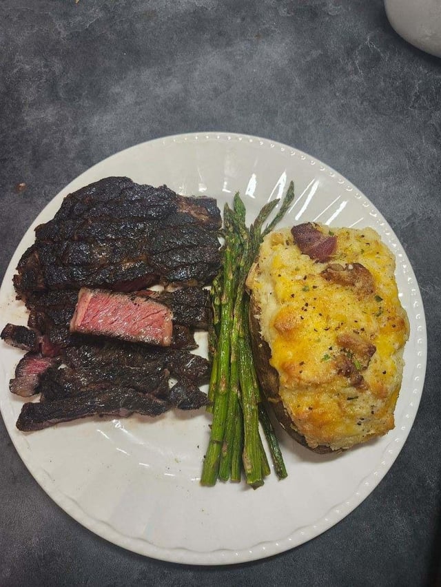 Holy bro not only is the steak a masterpiece the baked potato looks nothing short of godlike hell of a job
