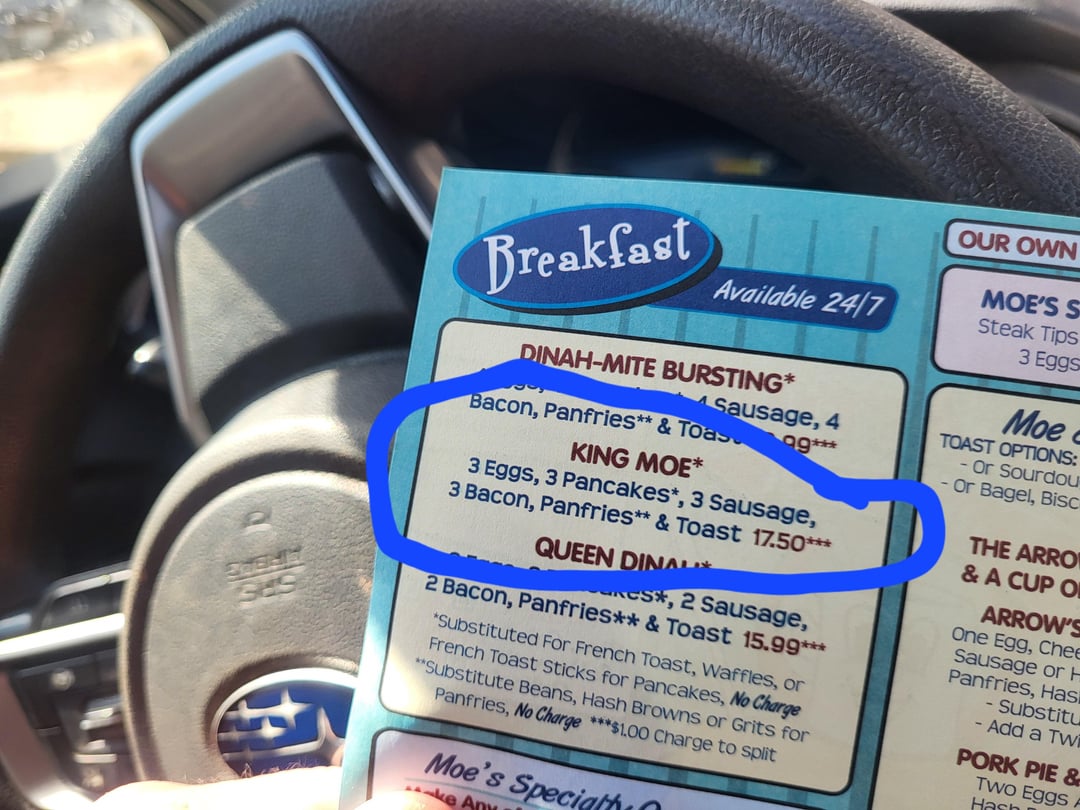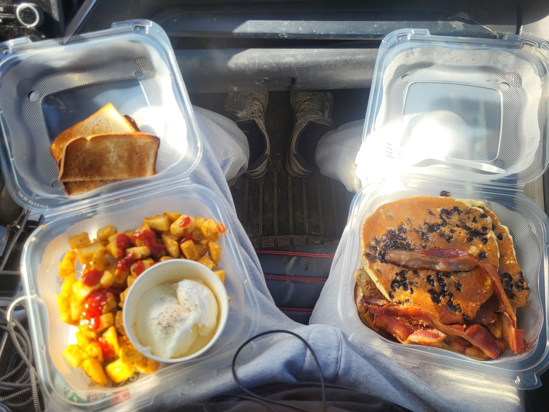 Cals in diner food? Thxby beachweiner8 2 Comments Sharp_Athlete_6847 11 months ago I’d estimate around 1600, and I assumed that’s 2 slices of toast and those are chocolate chip pancakes Ok_Flight5485 11 months ago 2350≈ Potatos 300, Eggs 225, toast/butter 250, bacon/sausage 400, pancakes/syrup 1100.Write A CommentYou must be logged in to post a comment.