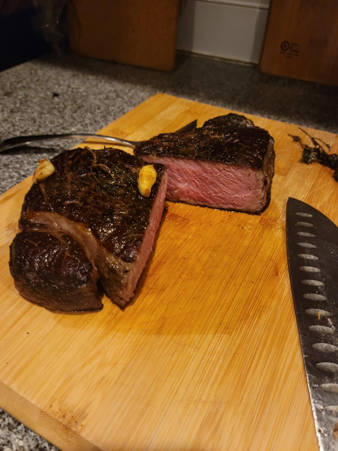 I did this at 134 for about 26 hours. Great flavor, lots of chew. Maybe too much chew for me. I'm a ribeye guy usually. Used the bag juices to make a nice sauce with red wine, butter, garlic and herbs. Definitely needed the sauce. The good news is, I only seared like a 3rd of this thing. It was massive. I have the other 2/3rds in the fridge for later searing, maybe we'll make chili or something with it.