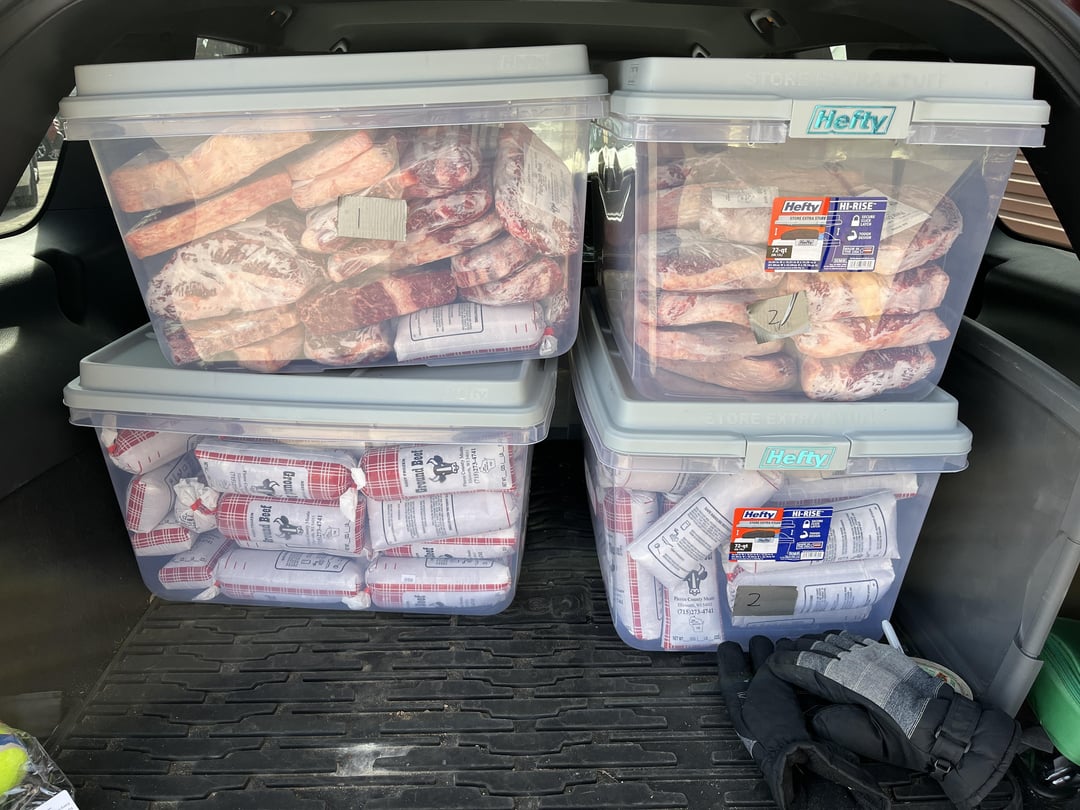 Picked up a full cow today (split between four families). There are four more tubs hidden behind the ones you can see. Just in time for grilling season.by zurds13 Write A CommentYou must be logged in to post a comment.