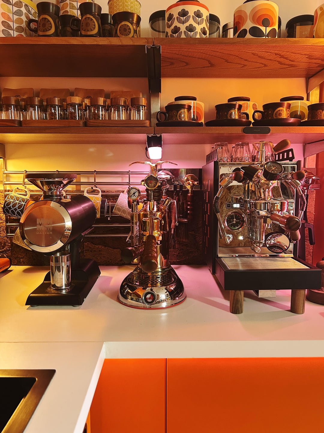 I have just finished refurbishing our kitchen and this is our coffee corner, new addition to the set up is the La Pavoni