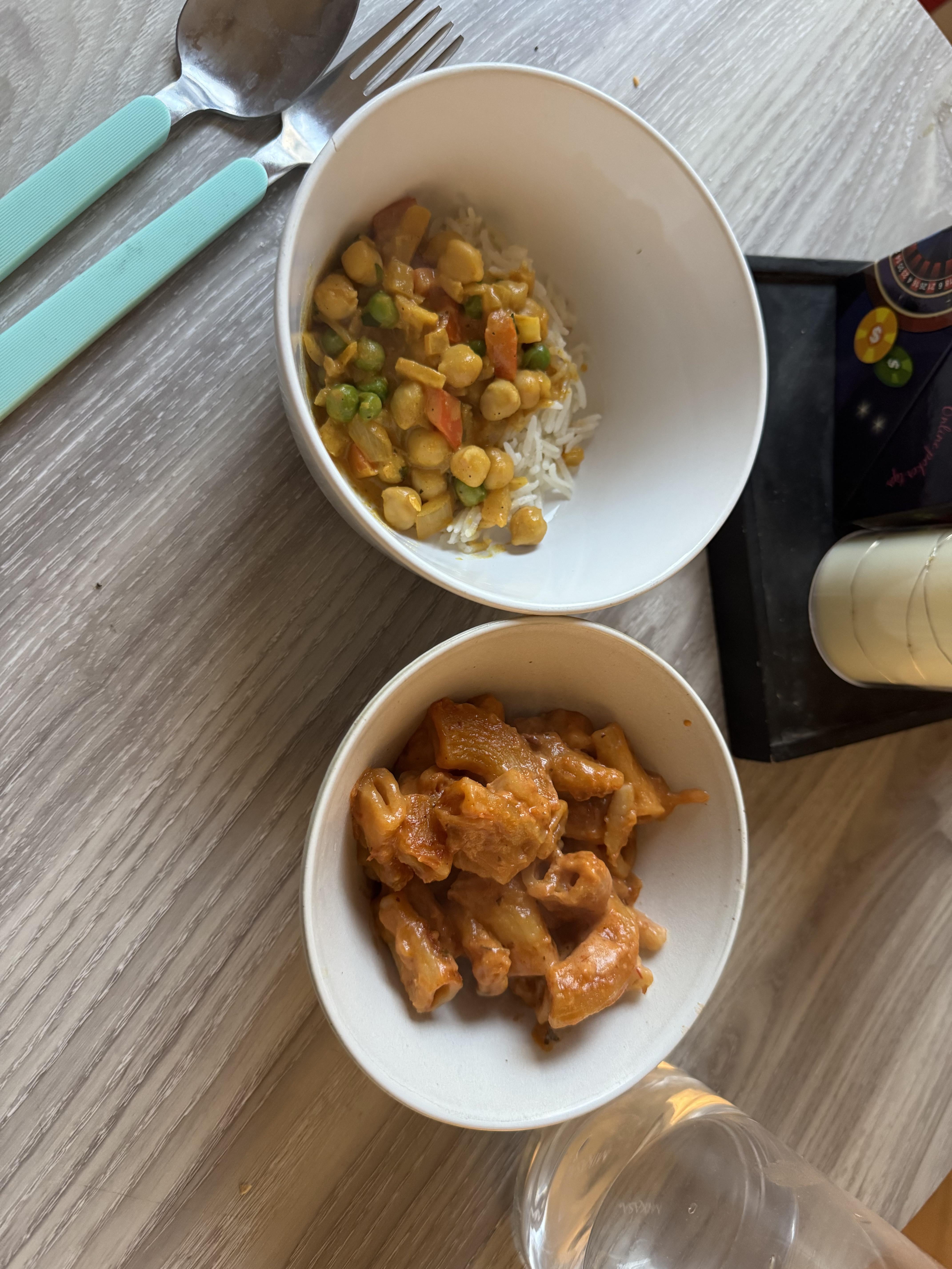 Here are 2 meals I made tonight. The Chickpea Curry was good not great. I think I’m not a fan of coconut milk in my curry and it had too many onions for me. You can see I added peas.