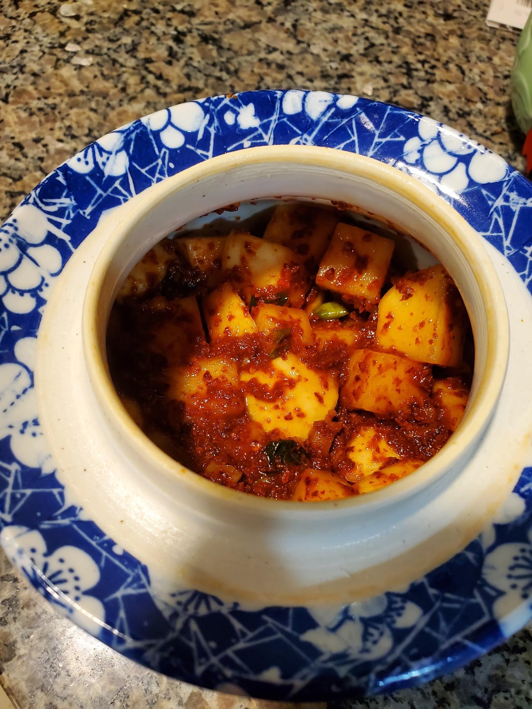 This is my first attempt at making kimchi of any kind. Tastes delicious just after mixing, can't wait to taste it as it ferments!