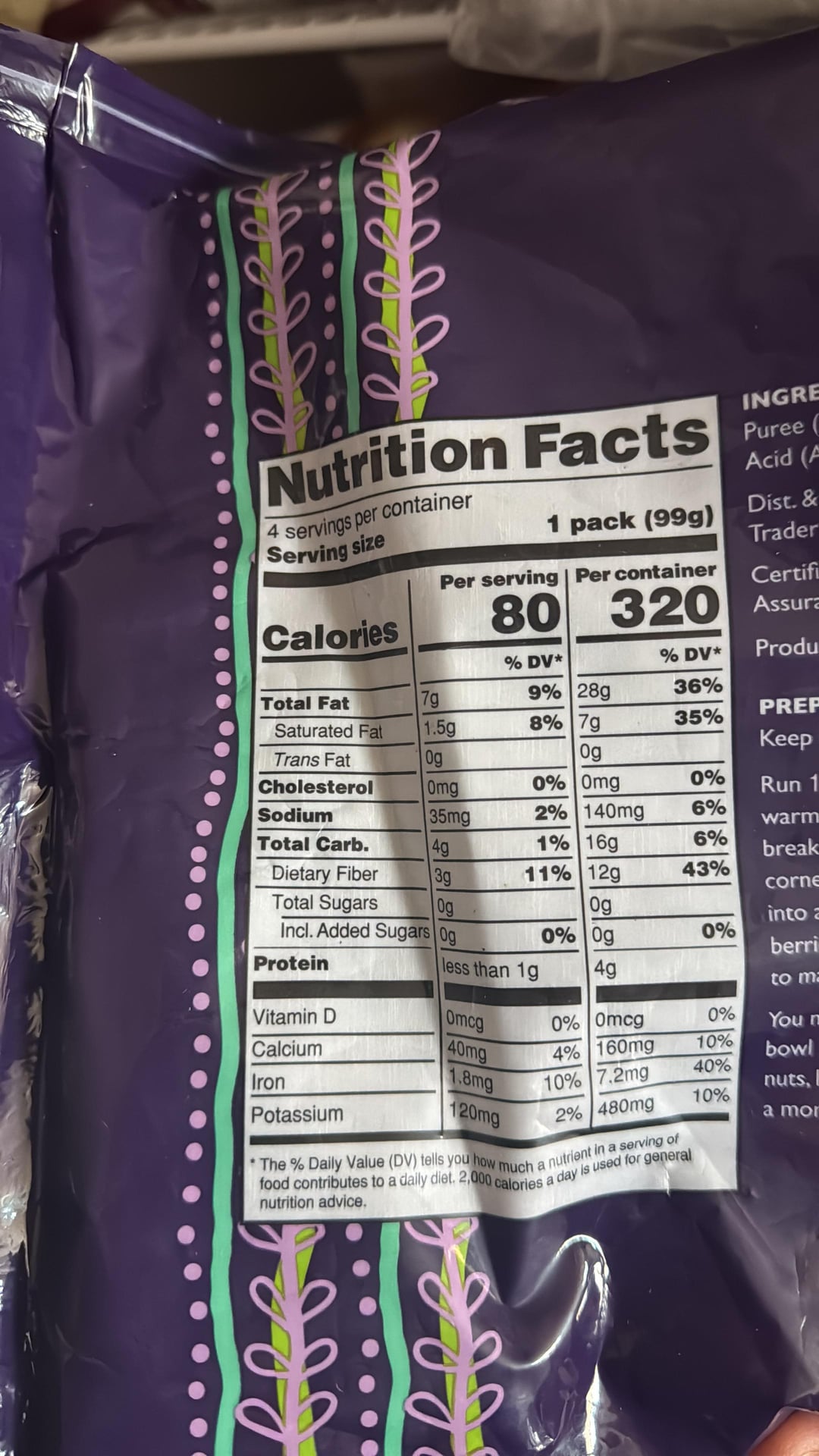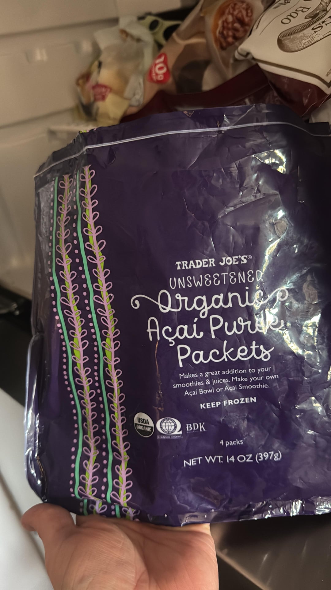 **- 2 packs (198g) of frozen açaí (usually in most grocery stores now, but found these at Trader Joe’s). Make sure the ones you get have no added sugar.**