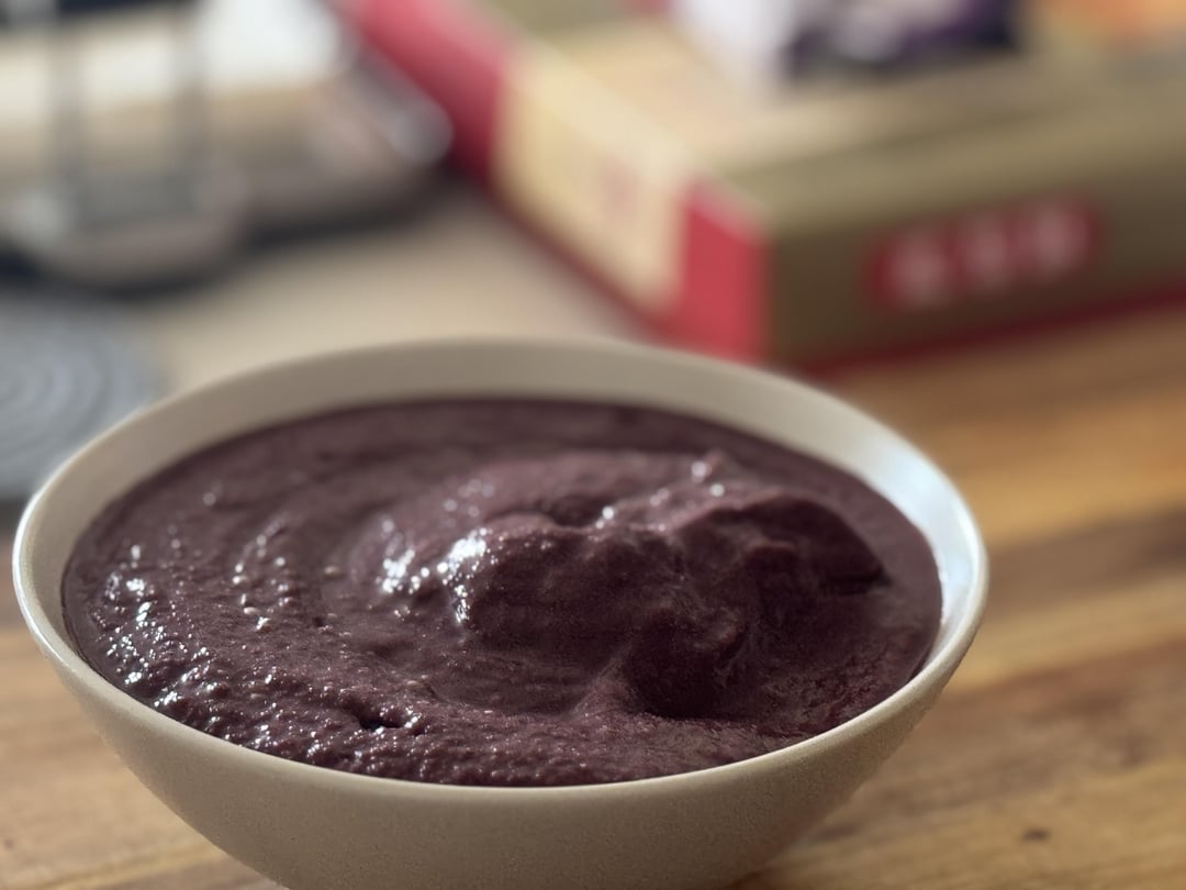 Blend. I used a hand blender in a long blending cup and it worked great! As mentioned, adjust water up or down to get the consistency you prefer, but the one show in my image is roughly the one I always consumed in Brazil. You can also add a bit of heavy cream if you want to up the fat content, but it will change it into more of a creamy smoothie than a traditional açaí bowl
