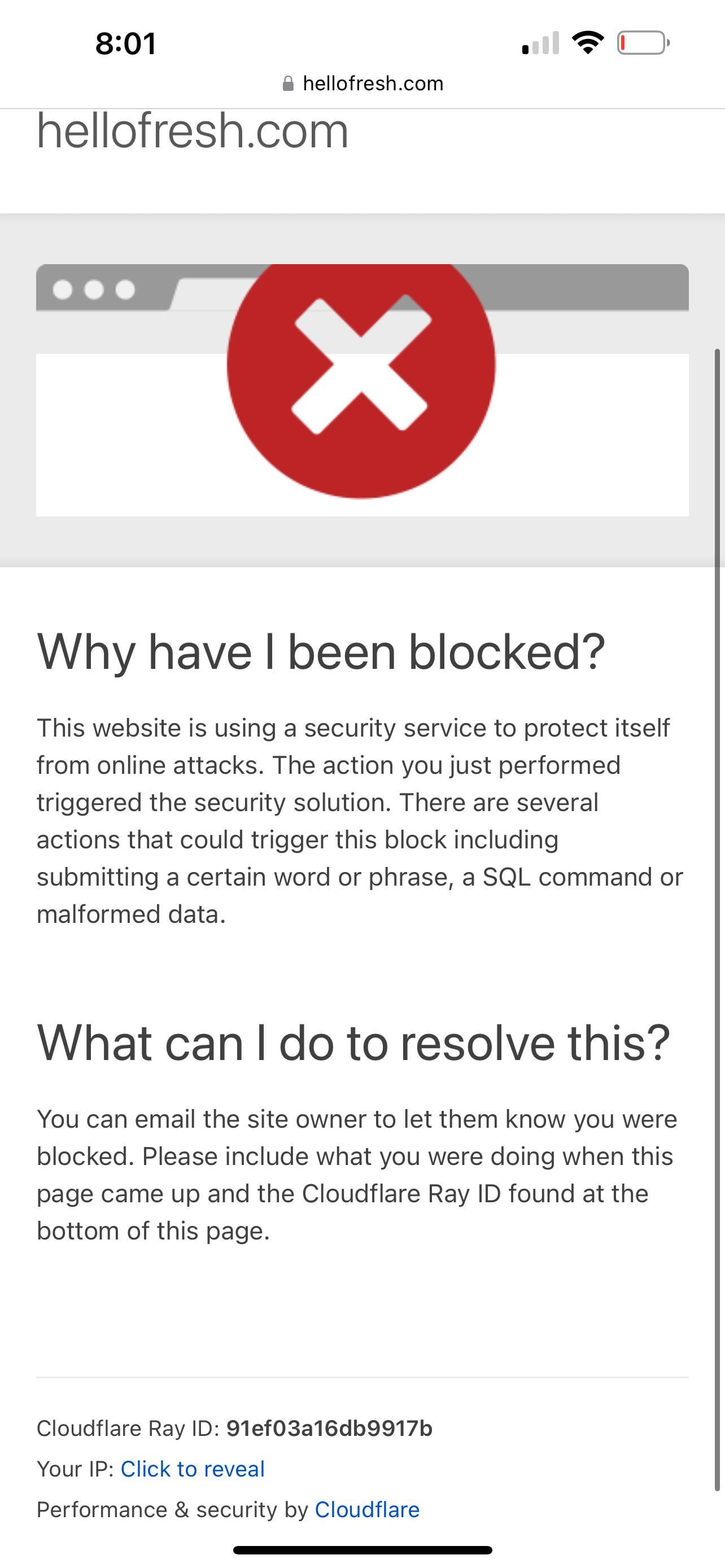 KeyYam9463 7 months ago Unfortunately experiencing the same right now, used the Google app on my phone to go to HelloFresh.com and was able to bypass whatever is going on.