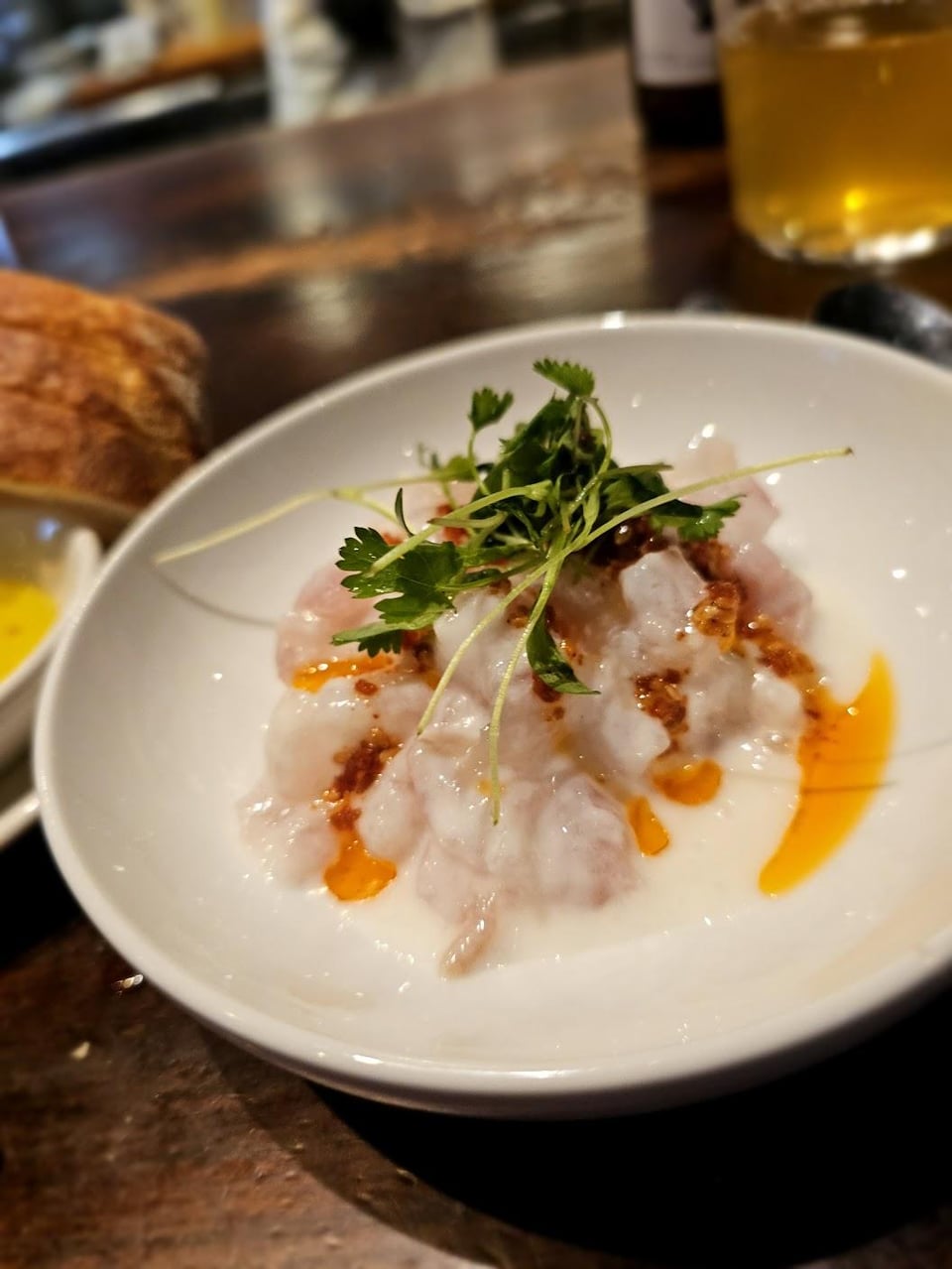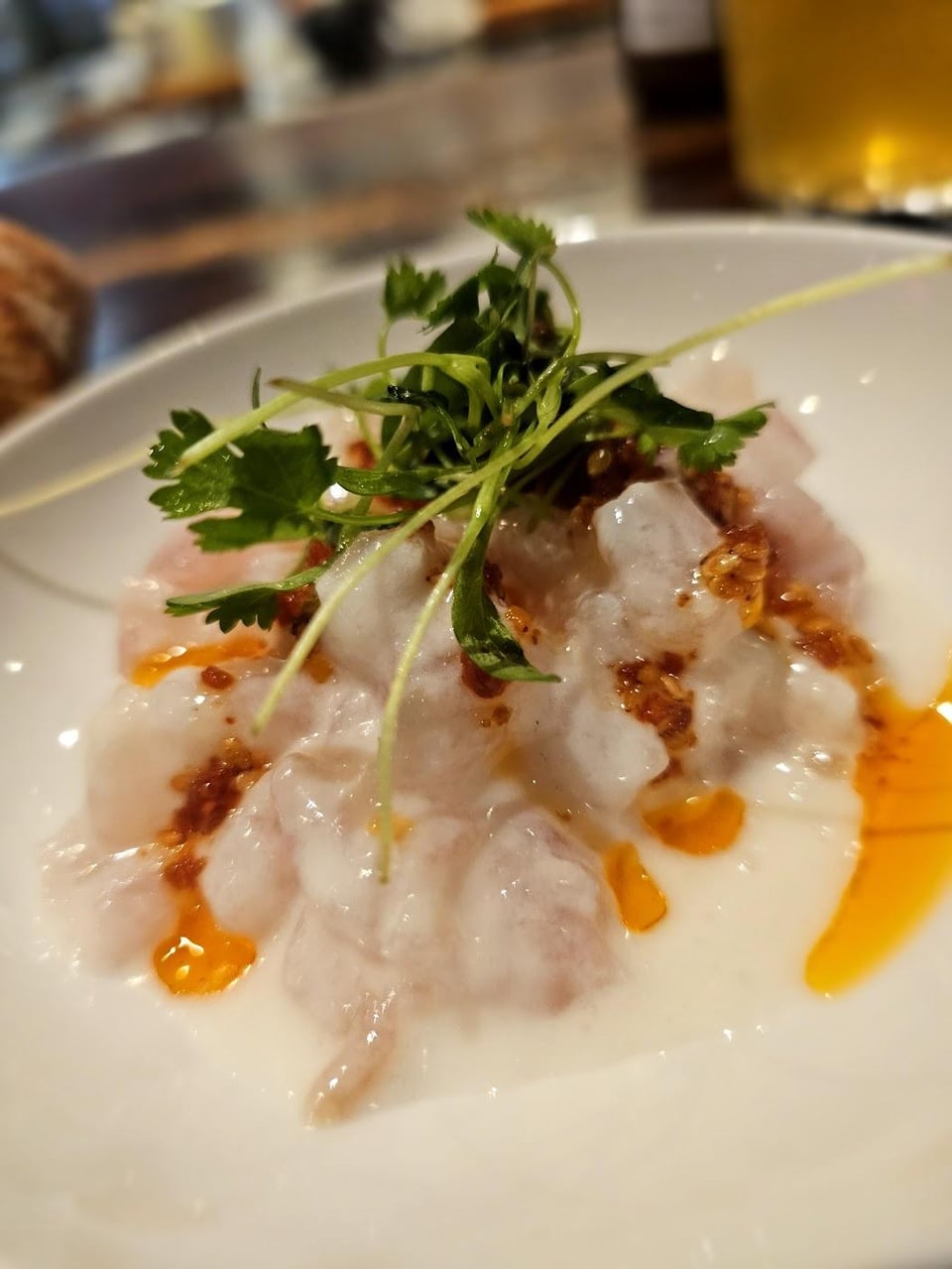 The fluke crudo ($22) was also tasty with good quality fish and a nice coconut flavor though I expected a bit more citrus and more spice from the leche de tigre. I’d probably get the eggs next time or simply the pan con tomate.