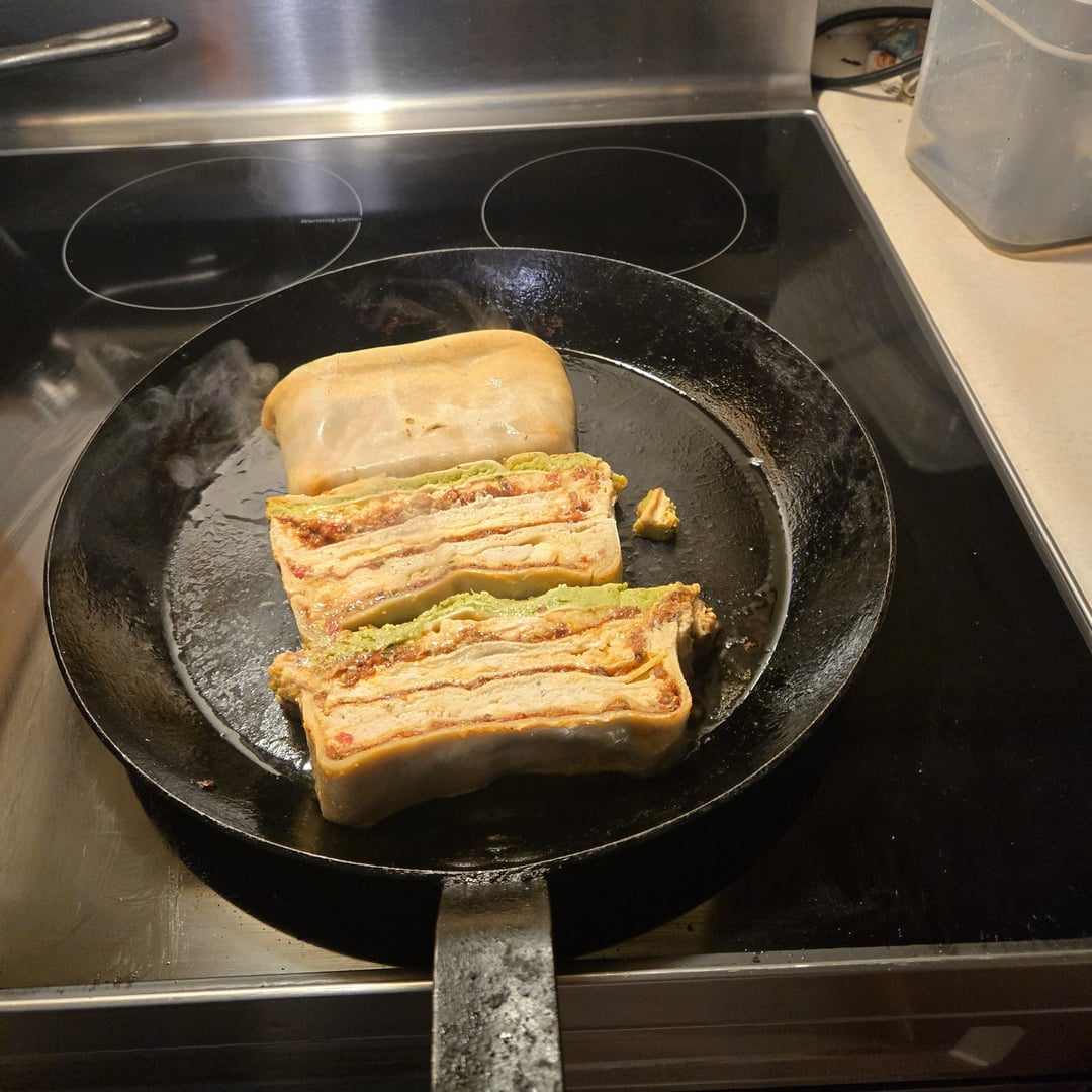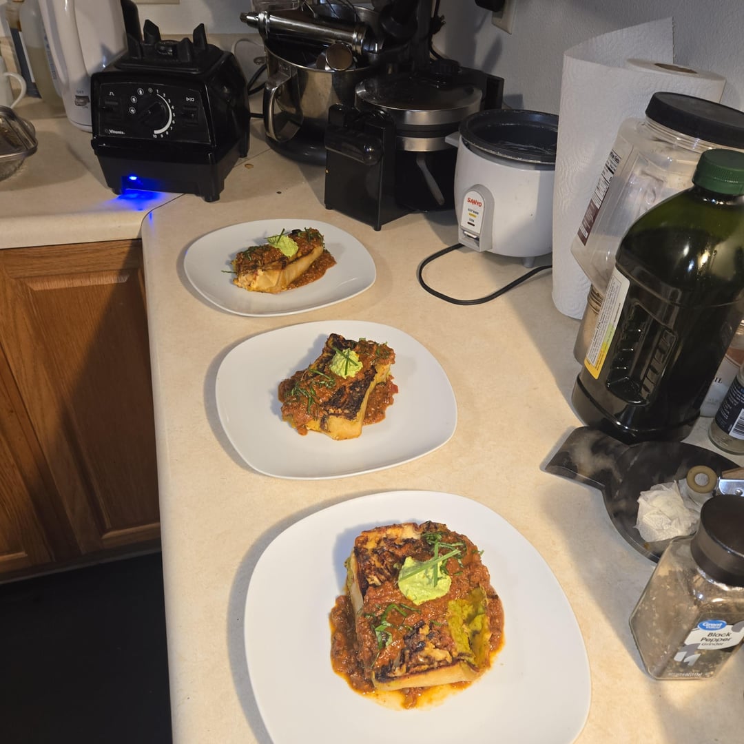 1st one (pics 1-6) is classic bolognese with bechemel and pesto ricotta. 2nd one is made with roasted veg, mozzarella and pesto. Made the outer noodle layer but used remade for inner layers. Was definitely the best lasagna I've made.