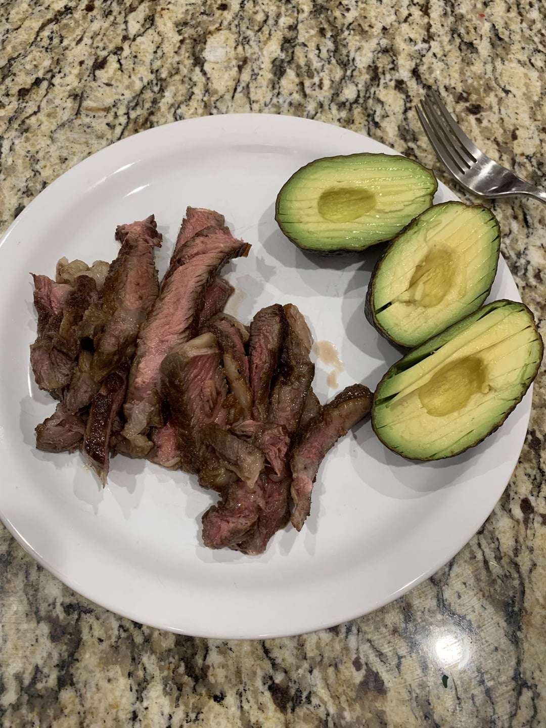 Not too bad actually. The one thing you really skipped on is presentation. Spoon the Avocado out of the shell before cutting and keep the pieces in place. Having only the tip of the knife run over the board helps. Then feather it out. Same thing for the steak, which looks great.
