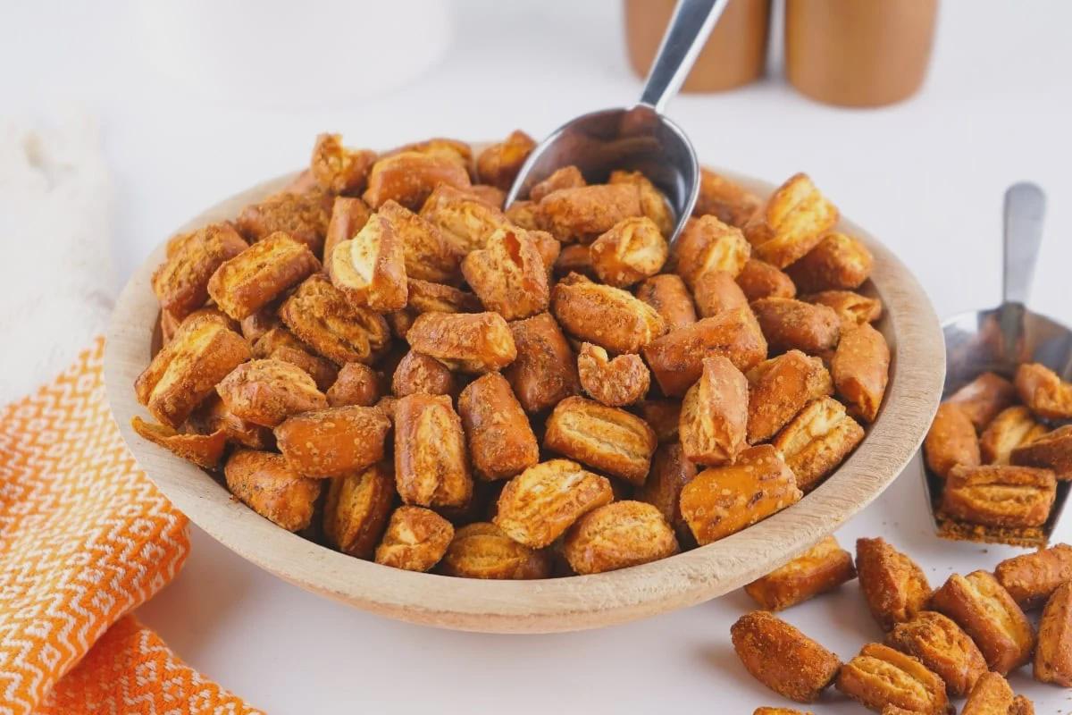1. Do you love salty snacks as much as I do? These **Seasoned Pretzels** are the perfect blend of flavorful taco seasoning and crunchy pretzels. This handheld snack is guaranteed to satisfy your salty snack cravings.