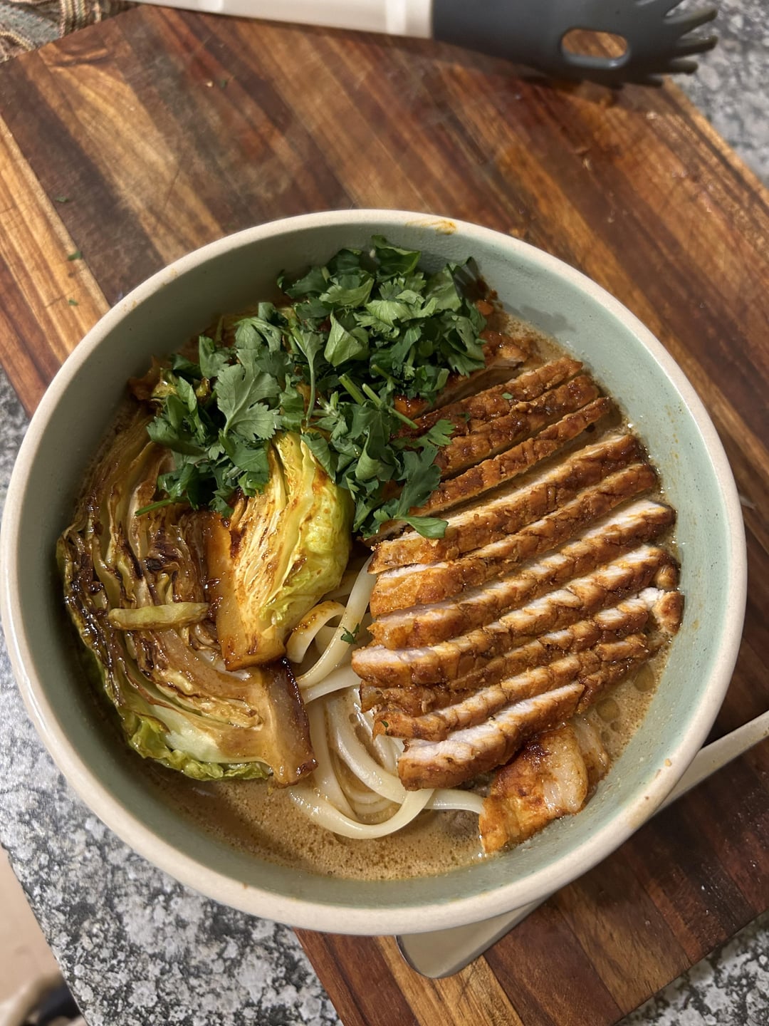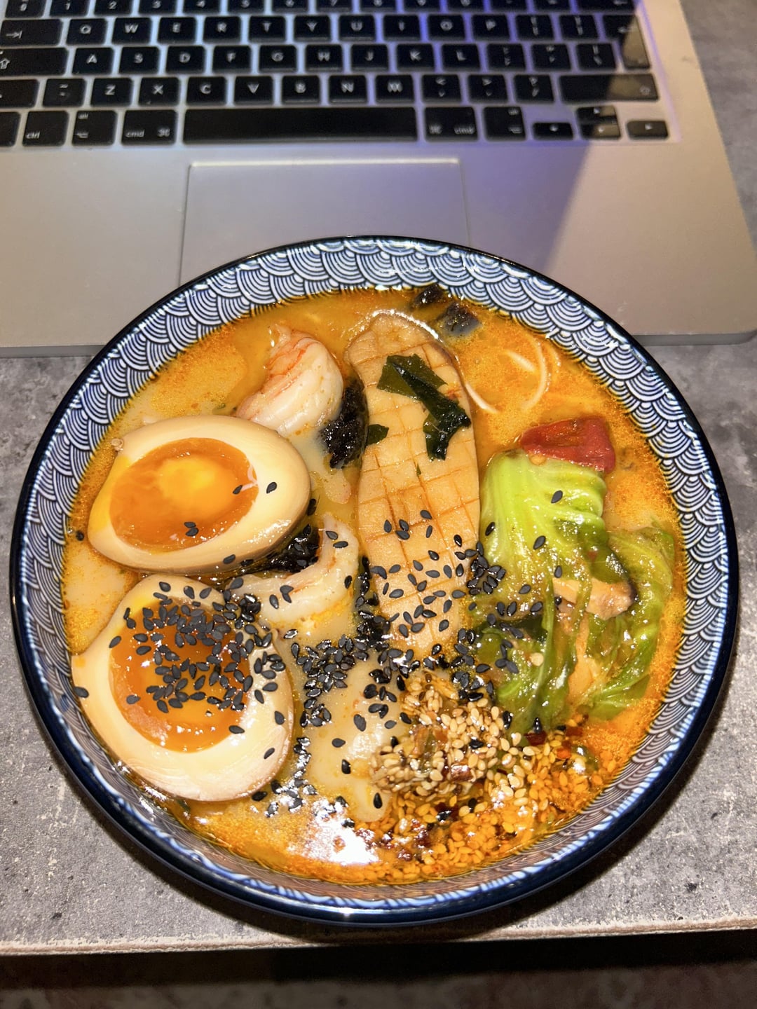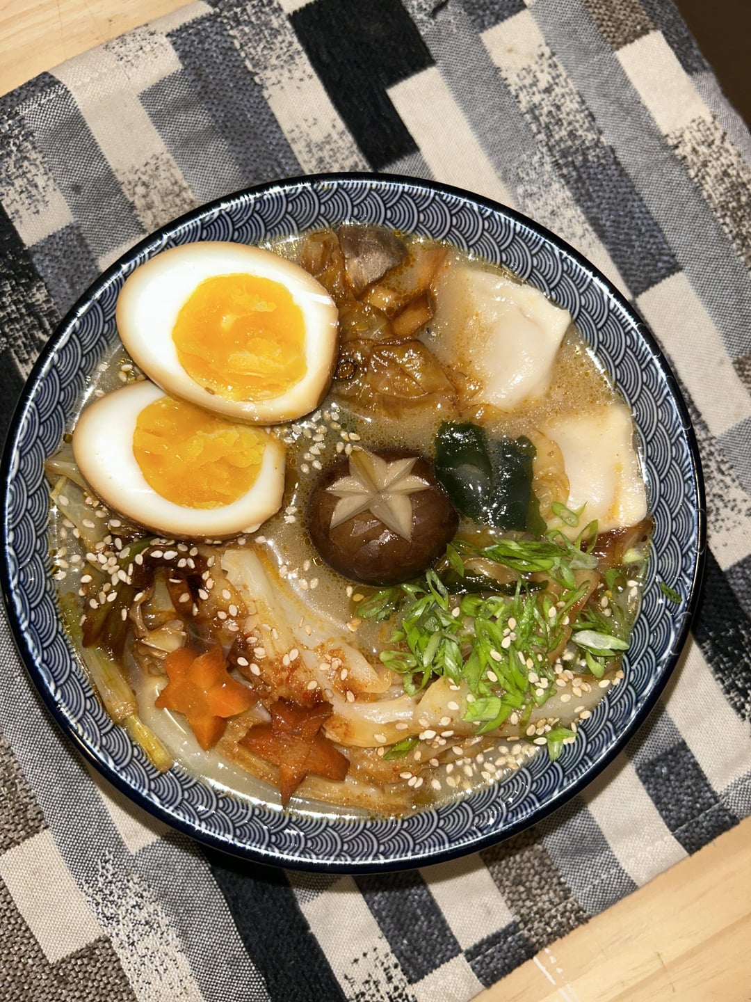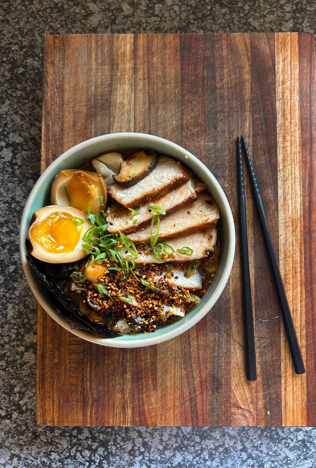 These attempts at ramen were made during a 7 month period where I was waiting for paperwork to join my husband abroad after he had moved countries. I found comfort in the meditative process of preparing the broth, filling my house with steam, taking time to respectfully and consciously prepare the meat, veggies, eggs etc. I’m a self-employed artist so spending two days boiling a broth was an absolute pleasure.