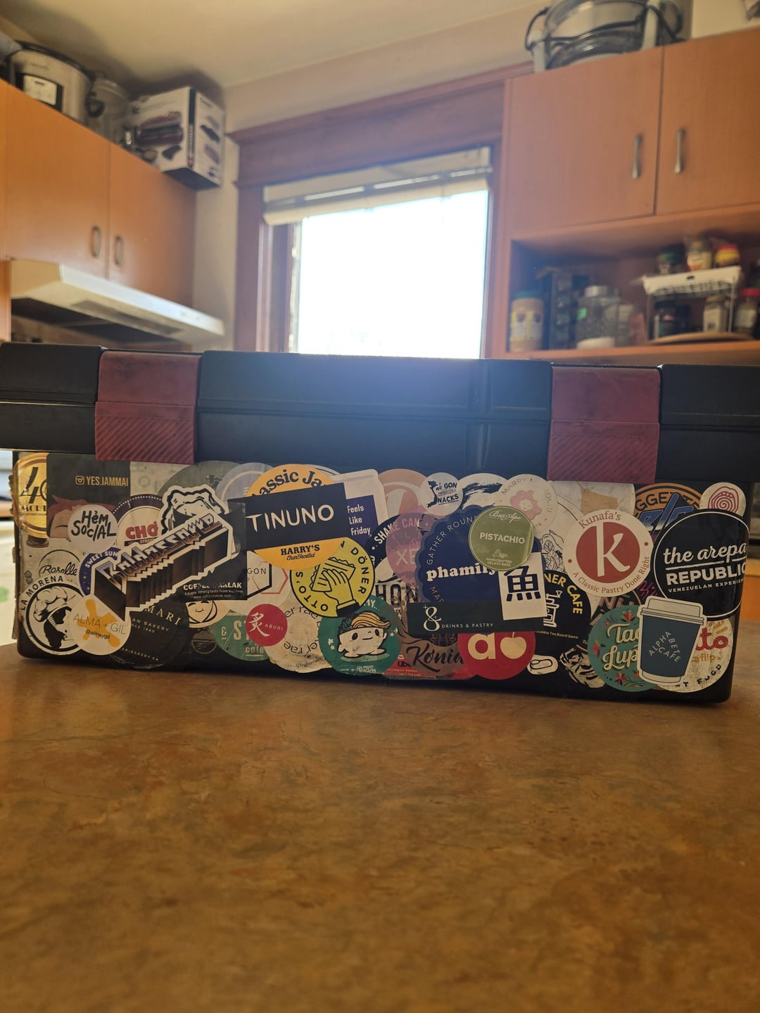 Tool box has the majority of stickers. I tried to overlap only on places that are no longer active (😭😭😭) but still pretty crowded. Started using my R&D mini fridge and beer fridge now! I try to collect mostly from GTA too. How many stickers can you recognize?? 😁😁