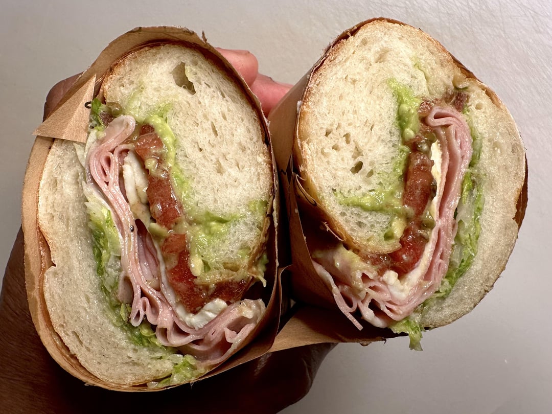 Homemade no-knead sandwich roll, my maple mustard lime aioli, smashed avocado, shredded iceberg, Beano’s sandwich dressing, mortadella, fresh seasoned mozzarella, and sliced heirloom tomato. Messy but oh so tasty!by No_Pattern3088 4 Comments Far-Ad1823 8 months ago Beautiful Djikass 8 months ago Looks very nice! What’s your bread recipe? softrotten 8 months ago Great looking sandwich. Also that tomato looks so good! I can’t wait for tomato season. Di3Beezy 8 months ago That is a good looking sandwich, and the breakdown of each element was a nice touch.Write A CommentYou must be logged in to post a comment.