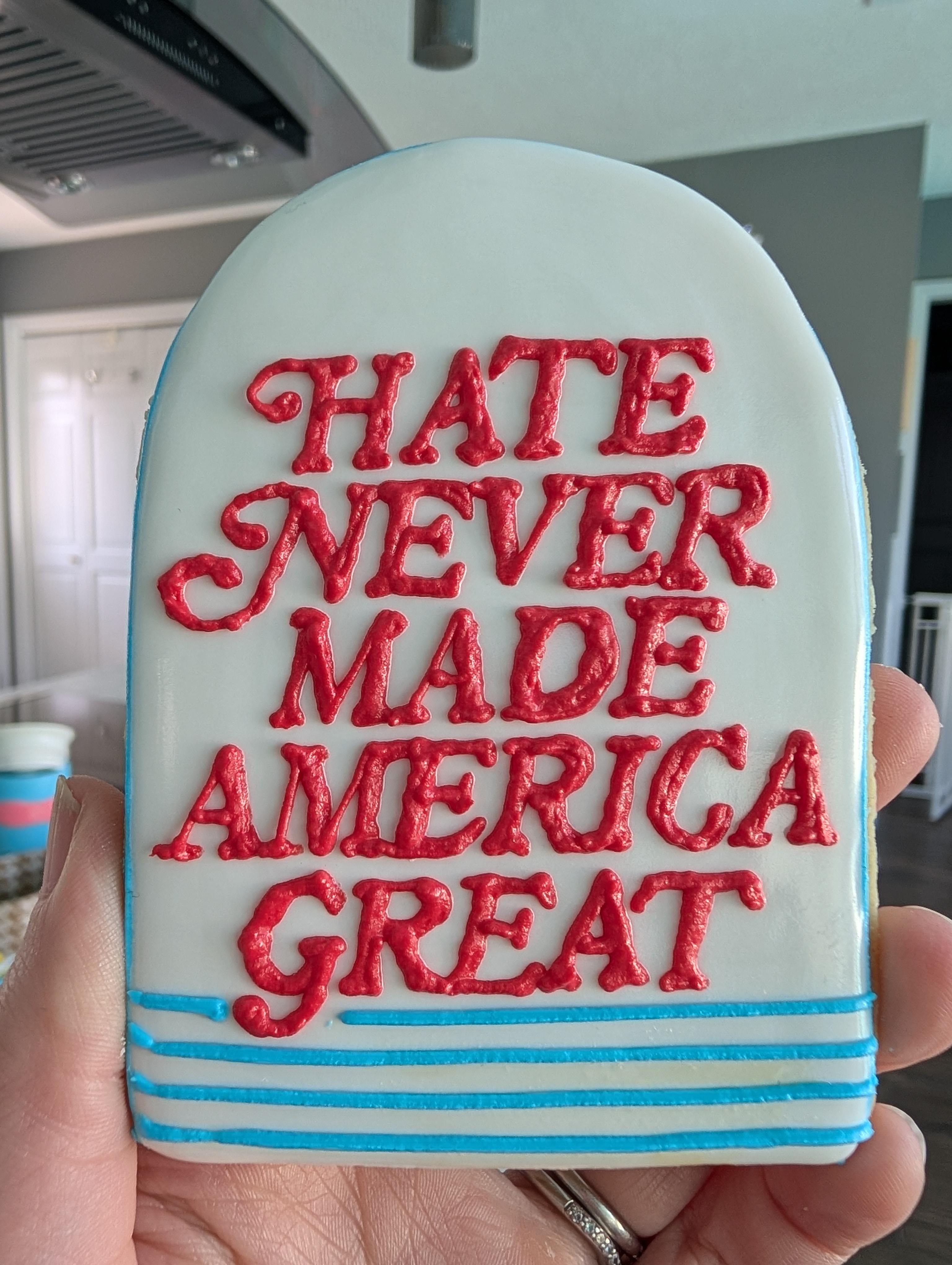 NICE!! The lettering looks a little grainy; not sure if maybe your hand was just shaking or if the buttercream broke. But the letters are straight and neat as a pin and the message is on point!