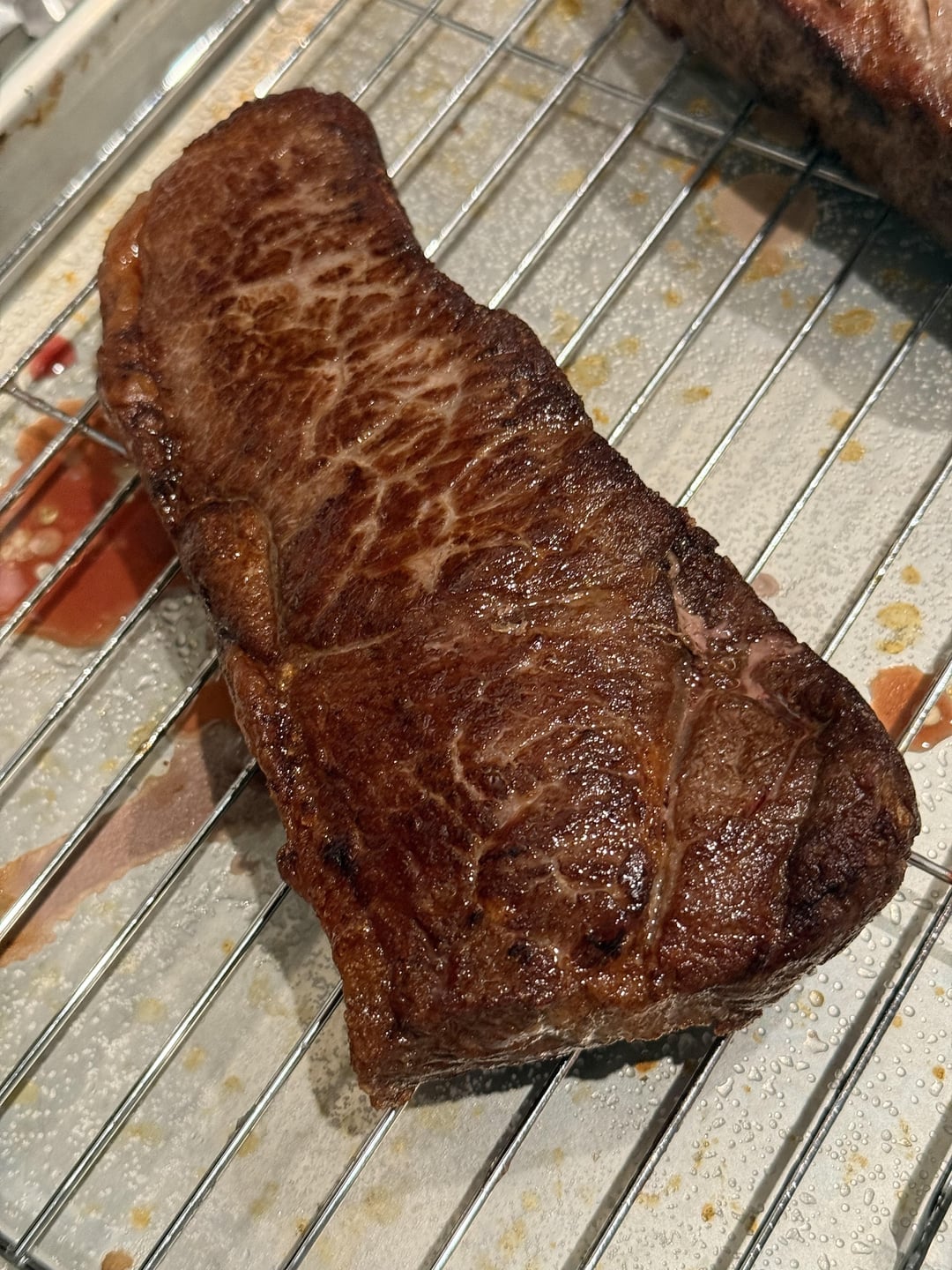 Looks beautiful. How long did you sear after reaching your internal temp? And on cast iron pan?