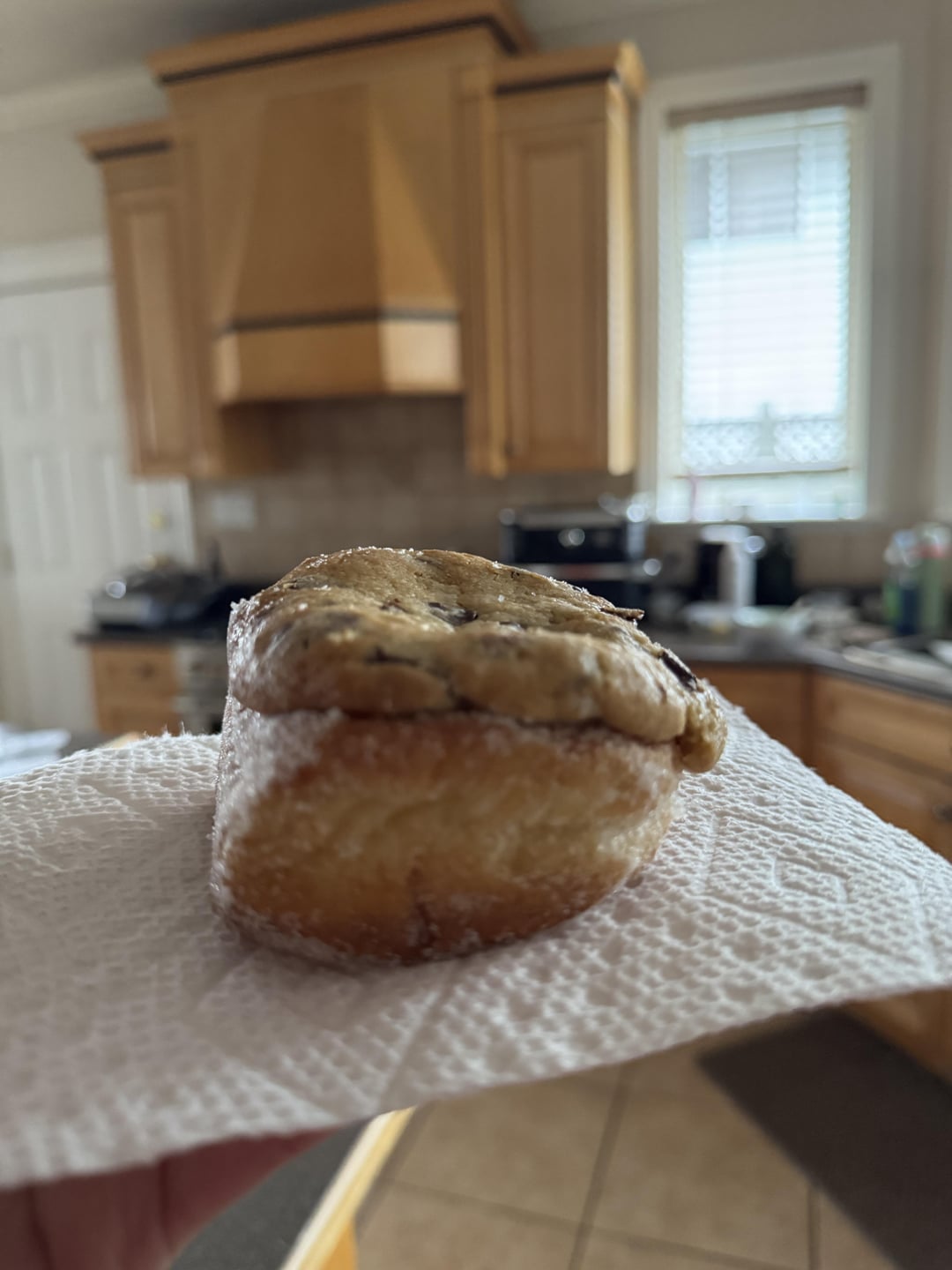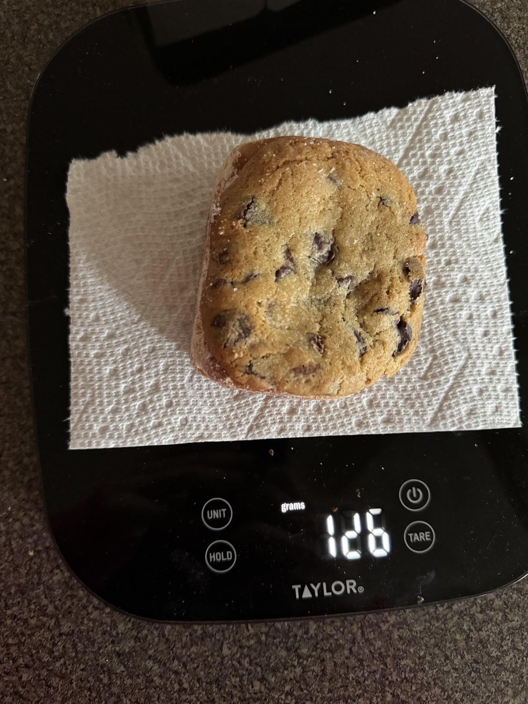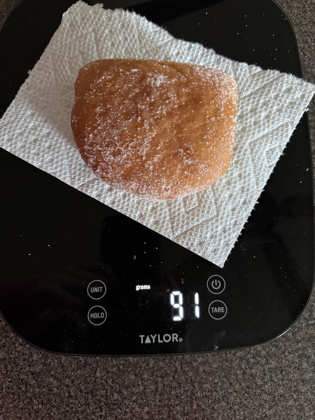 so when calculating these, especially the donukie…we should separate our donut, cookie dough (as filling), and cookie in order to estimate them in solitary. our brioche donut alone with no filling or topping is likely ≈80g, or ≈350 calories. ≈15g of cookie dough would be another ≈50 calories, which leaves us with ≈30g for the cookie as topping orrrr ≈125 calories.