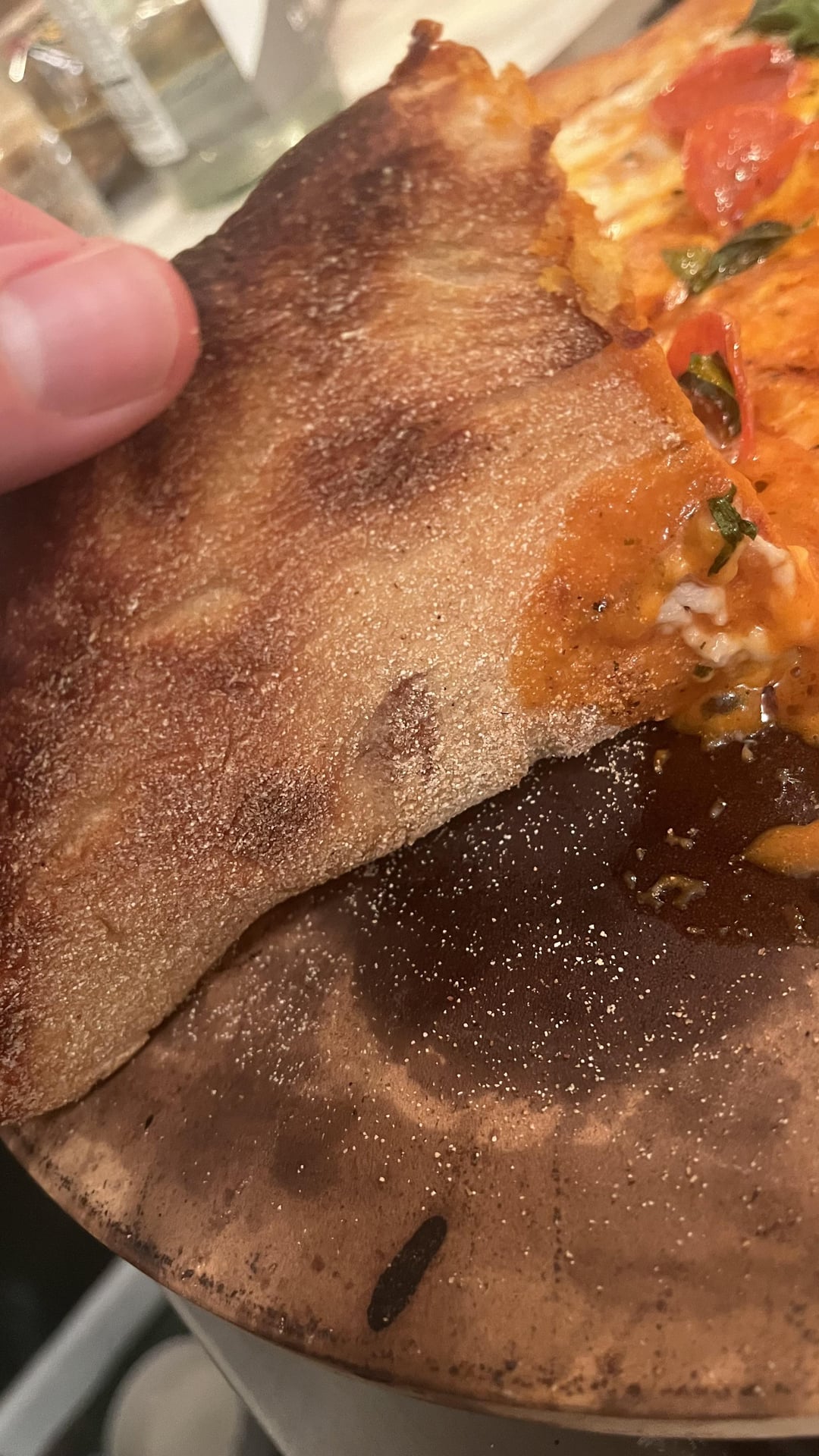 I definitely can improve… the bottom was nice and crisp, but the whole pizza was a little stiff. Idk if that is because I baked it for too long or because of the dough issue mentioned above.