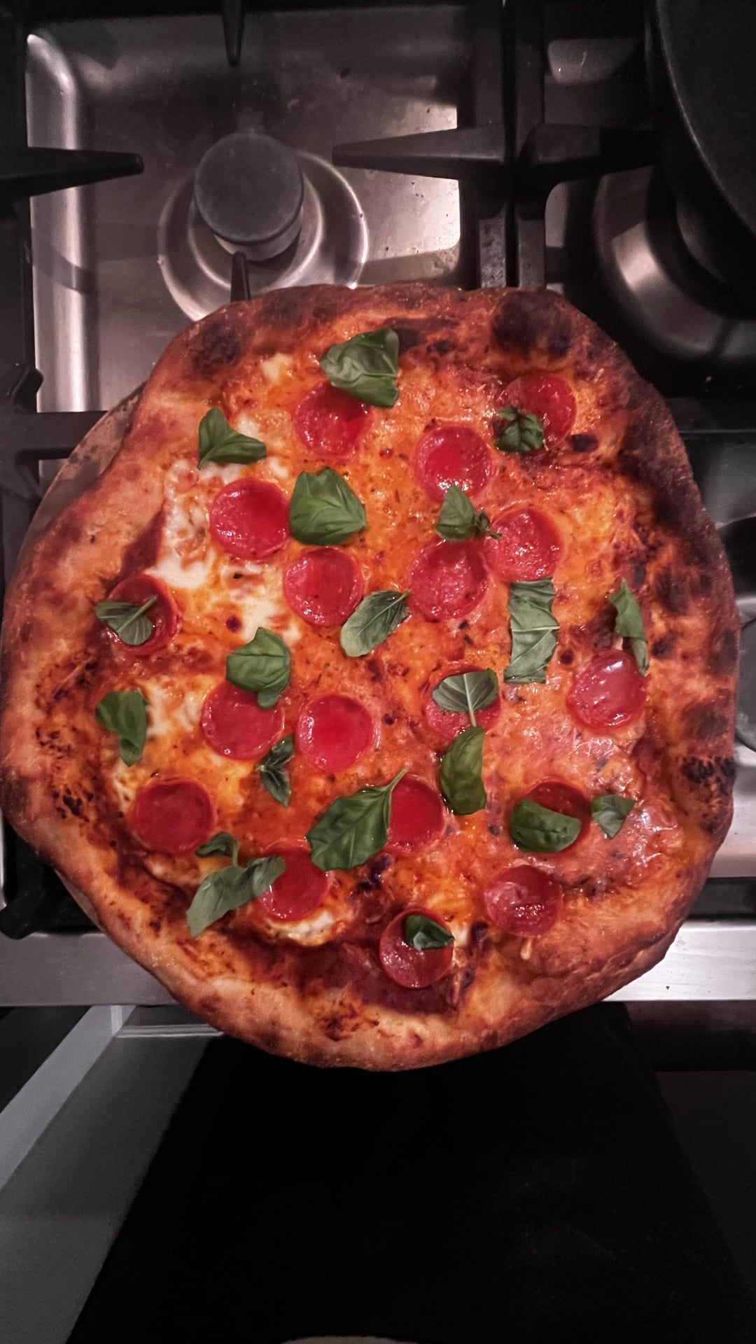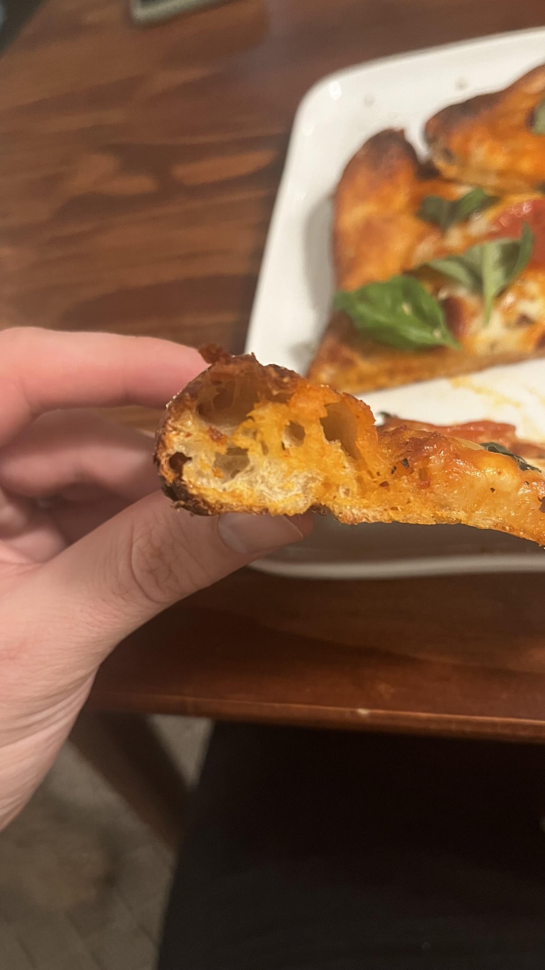 First ever pizza, attempting NY style. My dough barely rose (like maybe by 10% to 15%) I think my yeast is old, but I also probably used water that was too cold. I also feel like 58% hydration is a little low. I’m used to making bread which is super wet, but all that moisture also seems to help the dough rise.
