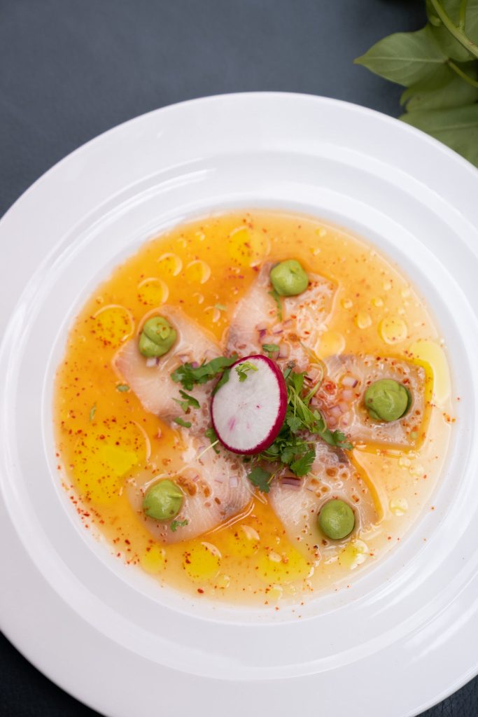 Hamachi crudo, citrus honey, espelette vinaigrette, serrano, avocado puree, red onion, cilantro.Nik House Media/Courtesy photos