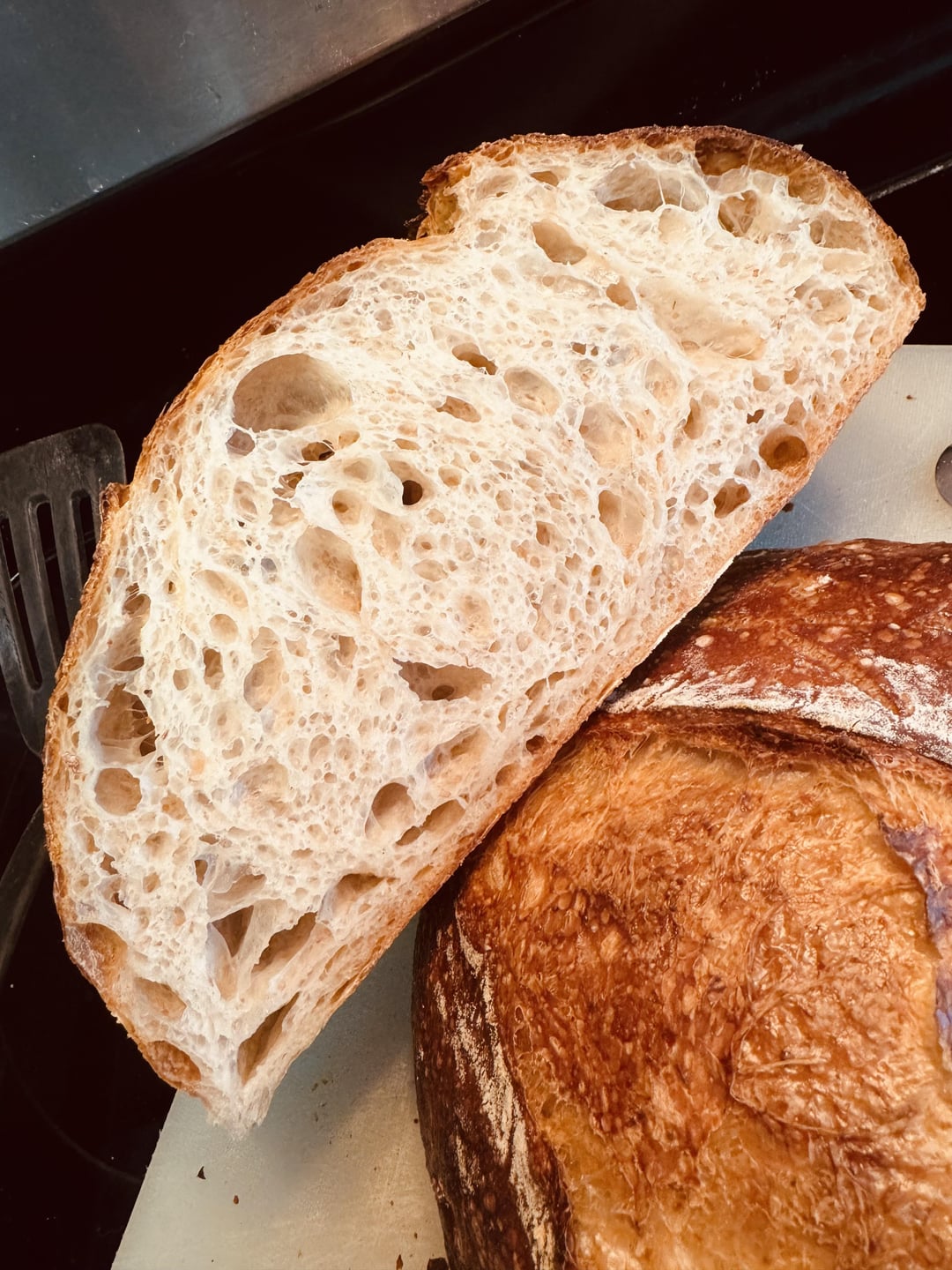 Loaf #11 Finally Open Crumb and shiny crust! Best loaf yet